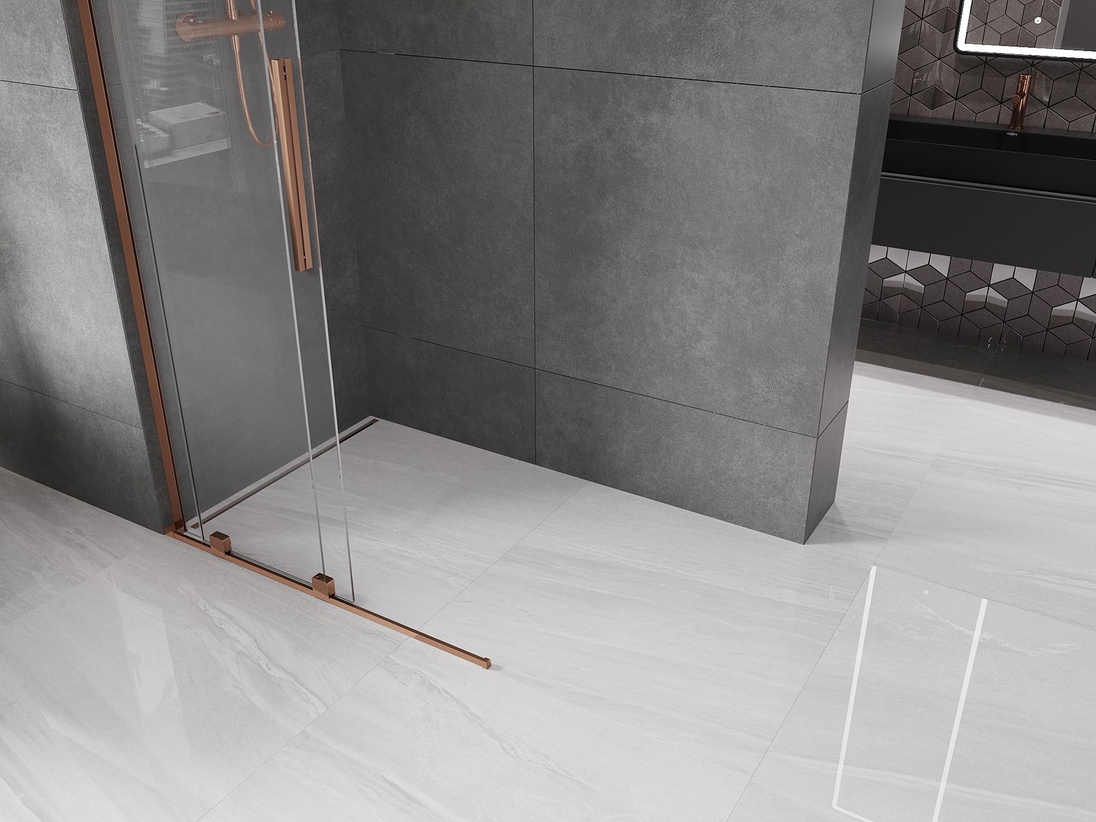 Mexen Velar L posuvná sprchová stena Walk-in 110 x 200 cm, priehľadná 8 mm, ružové zlato - 871-110-003-03-60