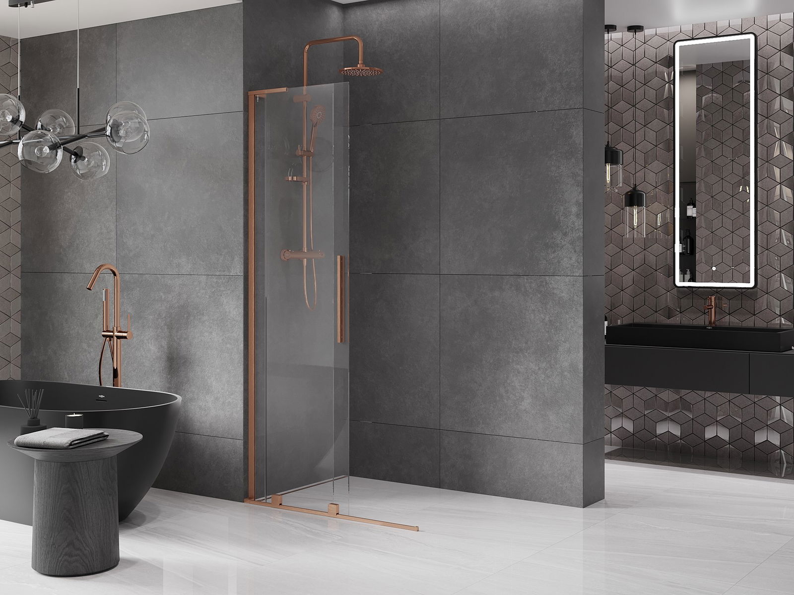 Mexen Velar L posuvná sprchová stena Walk-in 120 x 200 cm, transparentná 8 mm, kartáčovaná meď - 871-120-003-03-65