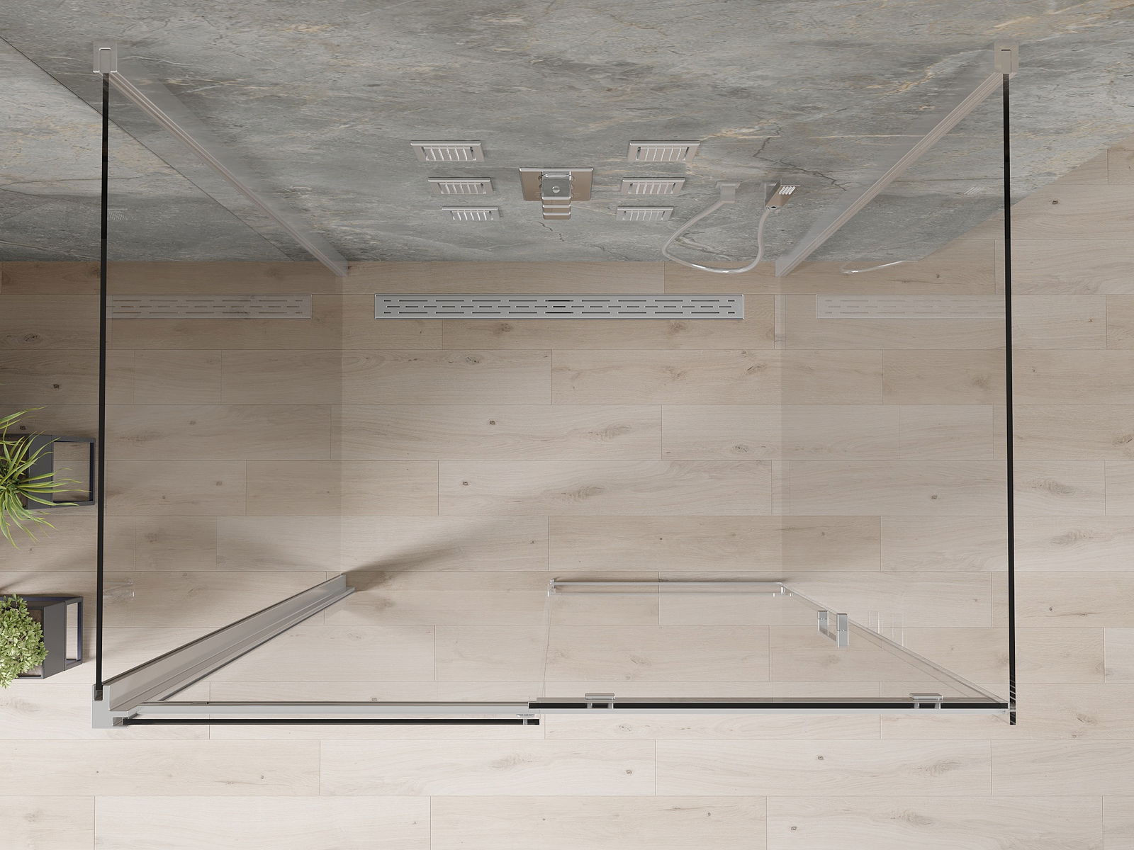 Posuvné dvere sa pohybujú po špeciálnych koľajniciach a nevyžadujú dodatočný priestor na otvorenie, preto sú ideálne pre menšie kúpeľne. Vďaka dvojitým kolieskam s kovovým telom je ich pohyb plynulý.