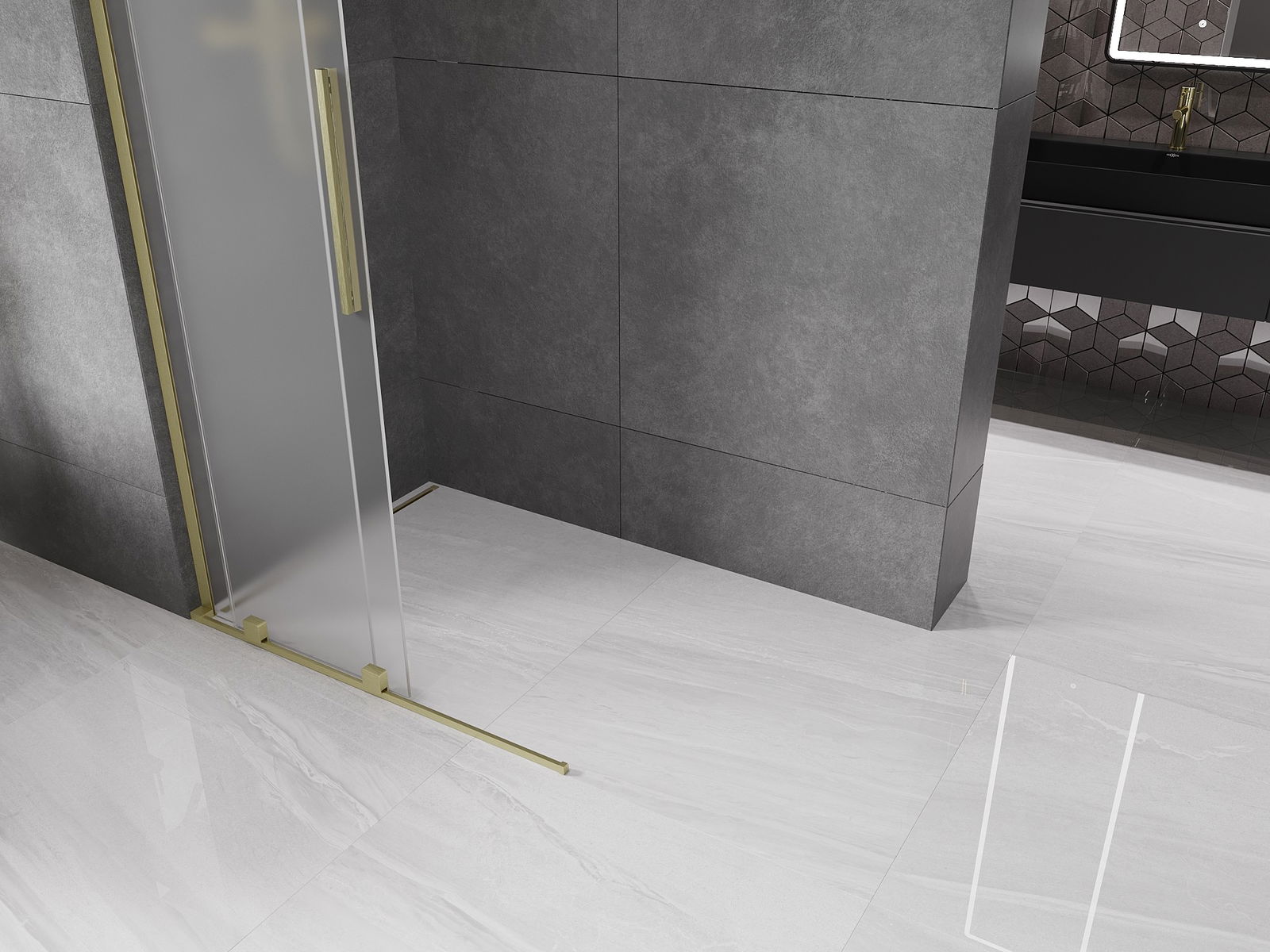 Mexen Velar L posuvná sprchová stena Walk-in 120 x 200 cm, námraza 8 mm, zlatá kefovaná - 871-120-003-33-55