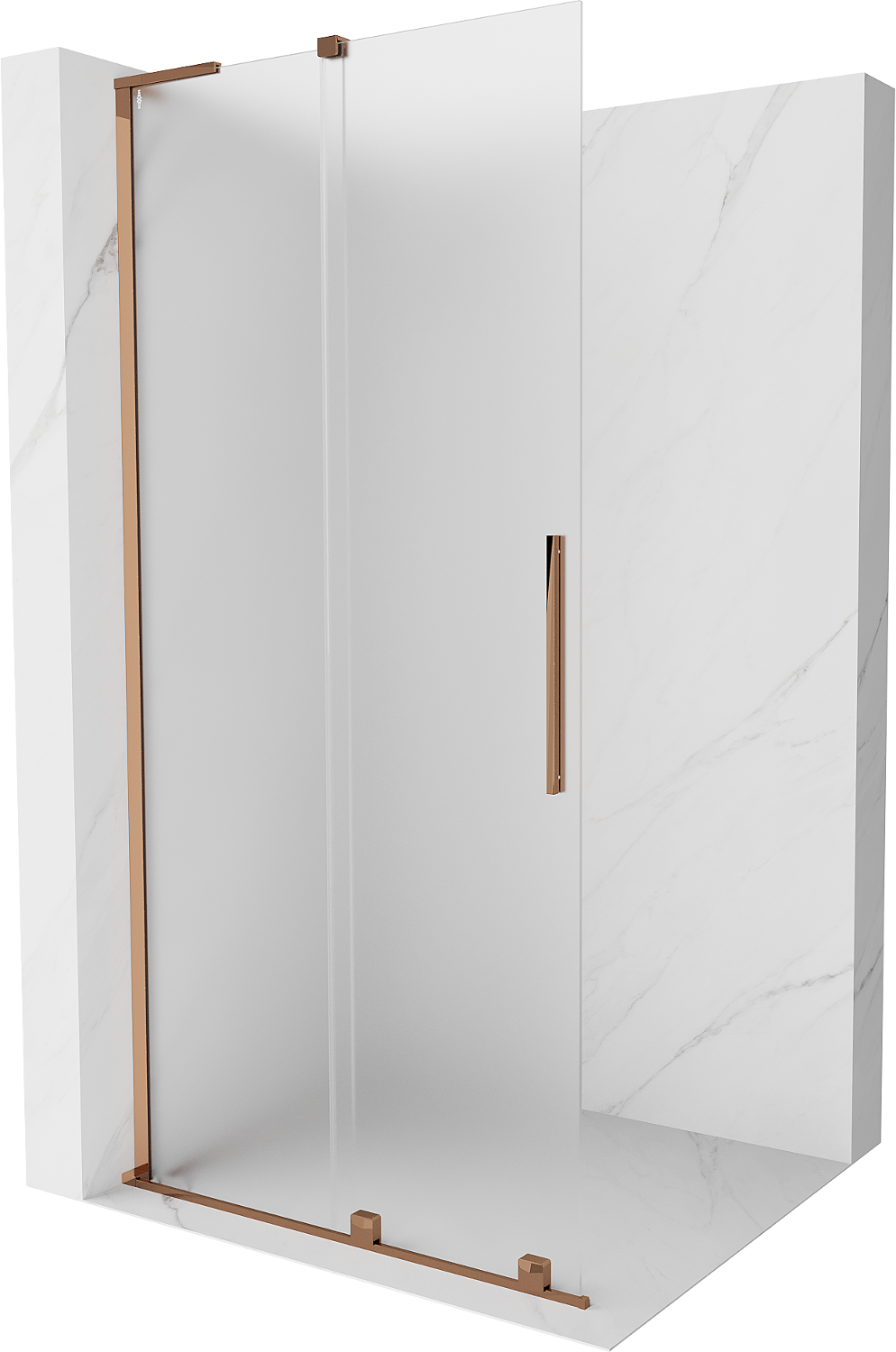 Mexen Velar L posuvná sprchová stena Walk-in 90 x 200 cm, matné sklo 8 mm, ružové zlato - 871-090-003-33-60