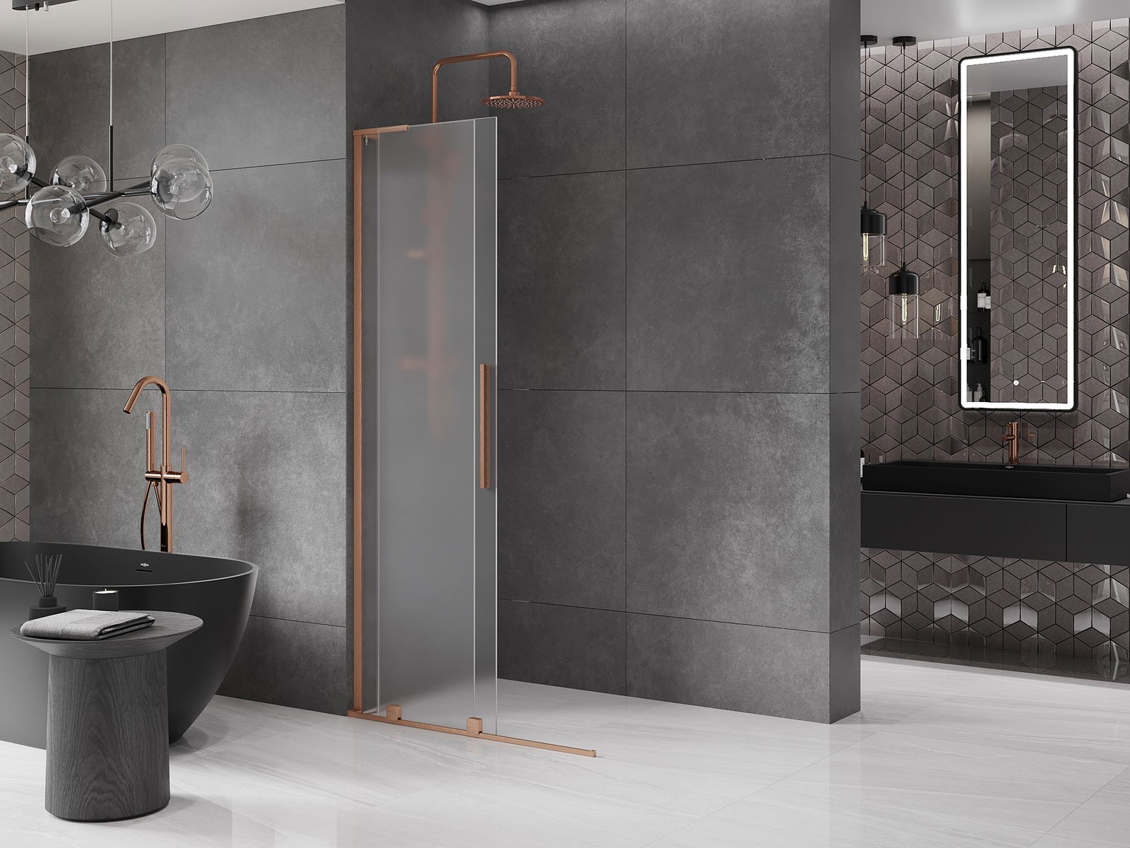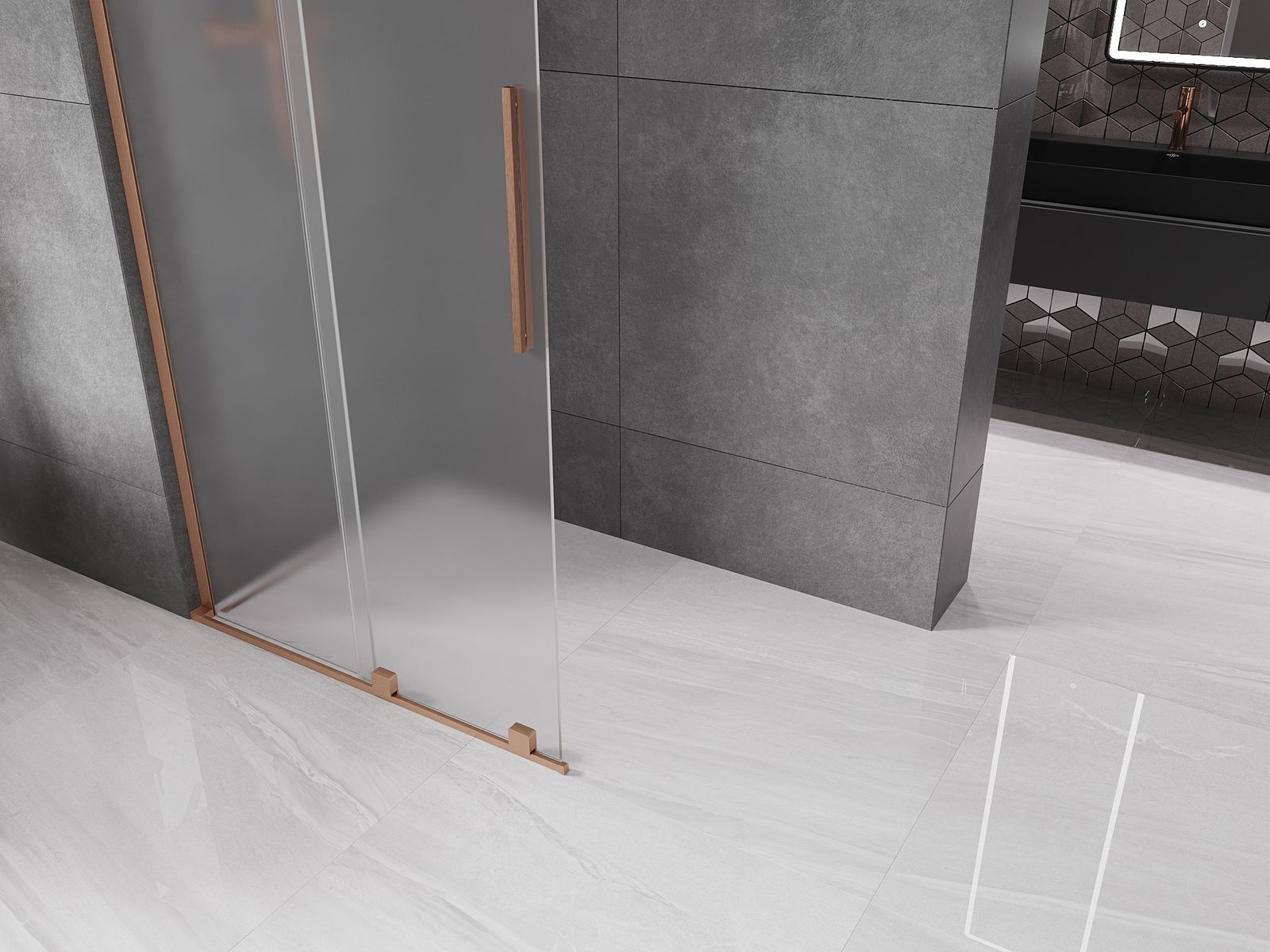 Mexen Velar L posuvná sprchová stena Walk-in 90 x 200 cm, mráz 8 mm, kefovaný meď - 871-090-003-33-65