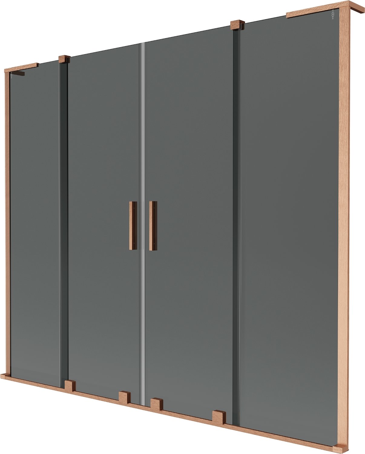 Mexen Velar L Duo dvojkrídlový vaňový paraván posuvný 180 x 150 cm, grafit, brúsená meď - 896-180-003-42-65