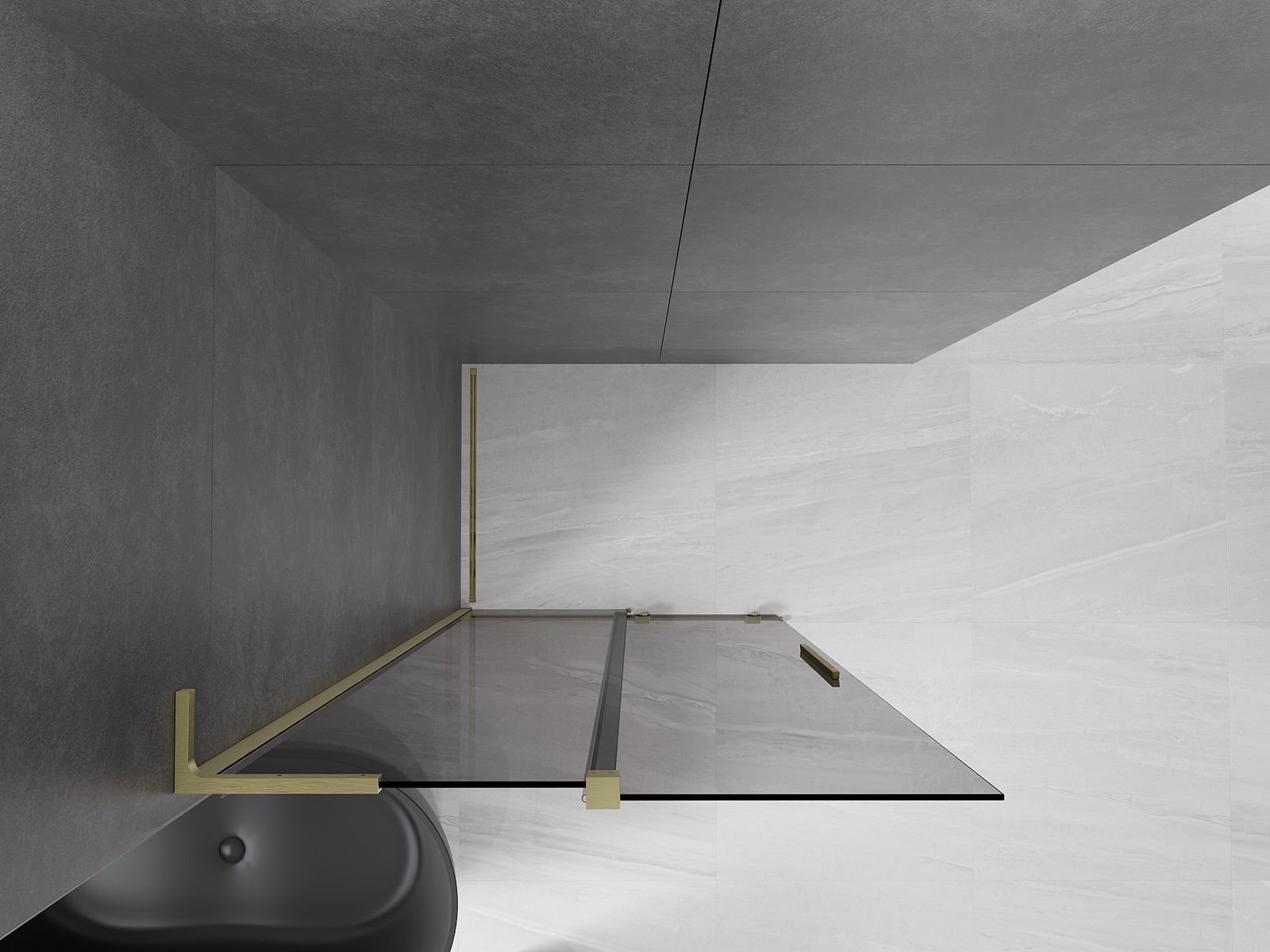 Mexen Velar L posuvná sprchová stena Walk-in 90 x 200 cm, grafitová 8 mm, zlatá kartáčovaná - 871-090-003-43-55