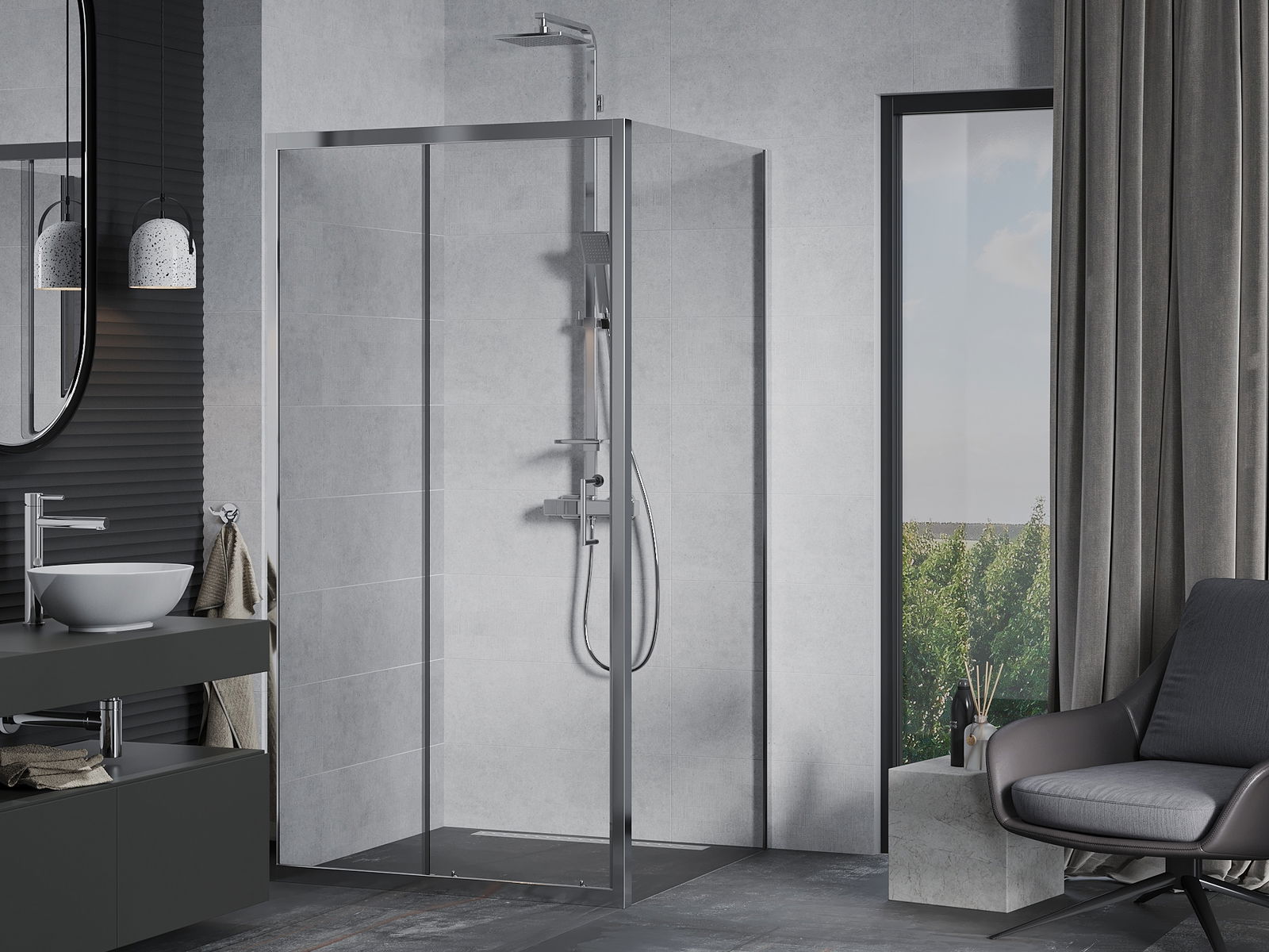 Posuvné dvere sa pohybujú okolo špeciálnych sprievodcov a na ich otvorenie nevyžadujú ďalší priestor, takže budú pracovať v menších kúpeľniach. Vďaka dvojitým valcom vyrobeným z odolného plastu je ich pohyb plynulý.