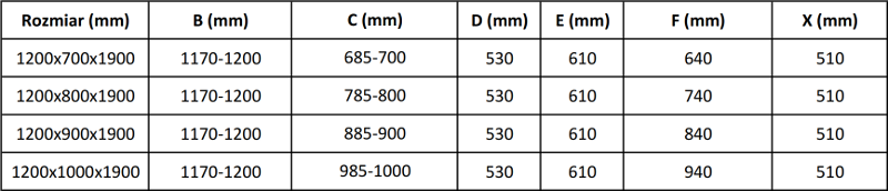 Veľkosť: 120x70 cm (dvere 120 cm. stena 70 cm)