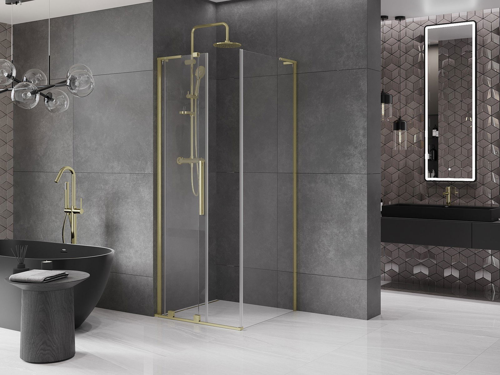 Praktická a pohodlná rukoväť je vyrobená z nehrdzavejúcej ocele. Módny tvar v kombinácii s povrchovou úpravou, ktorá ladí s farbou profilov, dodáva celku moderný a štýlový vzhľad, čím zvyšuje estetiku každej kúpeľne.