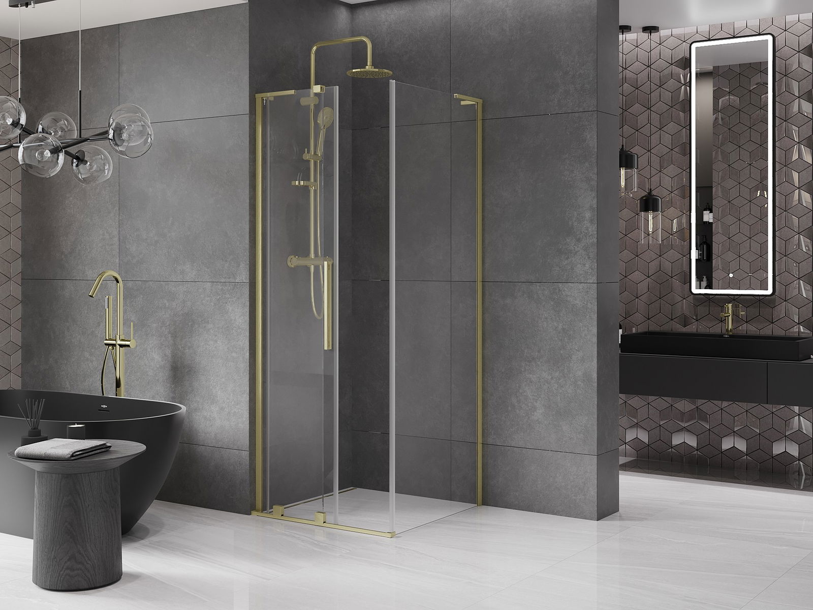 Praktický a pohodlný držiak je vyrobený z nehrdzavejúcej ocele. Módny tvar v kombinácii s povrchovou úpravou prispôsobenou farbe profilov dodáva celej konštrukcii moderný a štýlový vzhľad, podčiarkujúc estetiku každej kúpeľne.