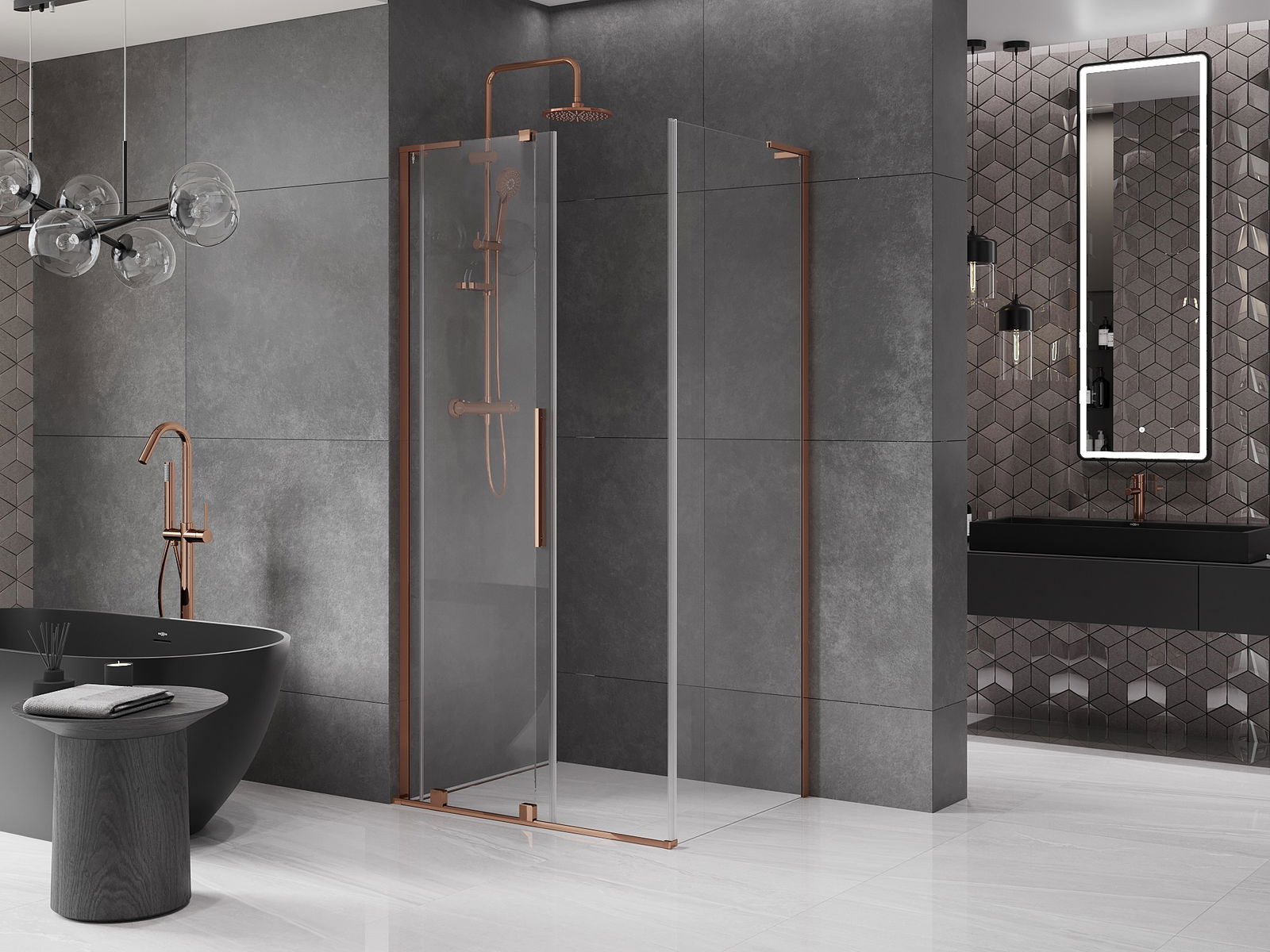 Mexen Velar L posuvná sprchová kabína 90 x 70 cm, transparentná, ružové zlato - 871-090-070-03-60