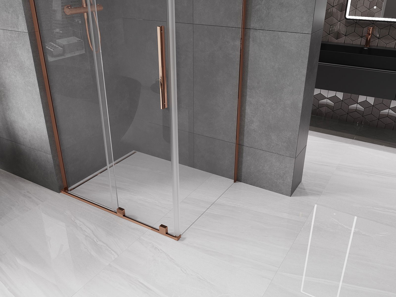 Mexen Velar L sprchová kabína posuvná 110 x 85 cm, transparentná, ružové zlato - 871-110-085-03-60