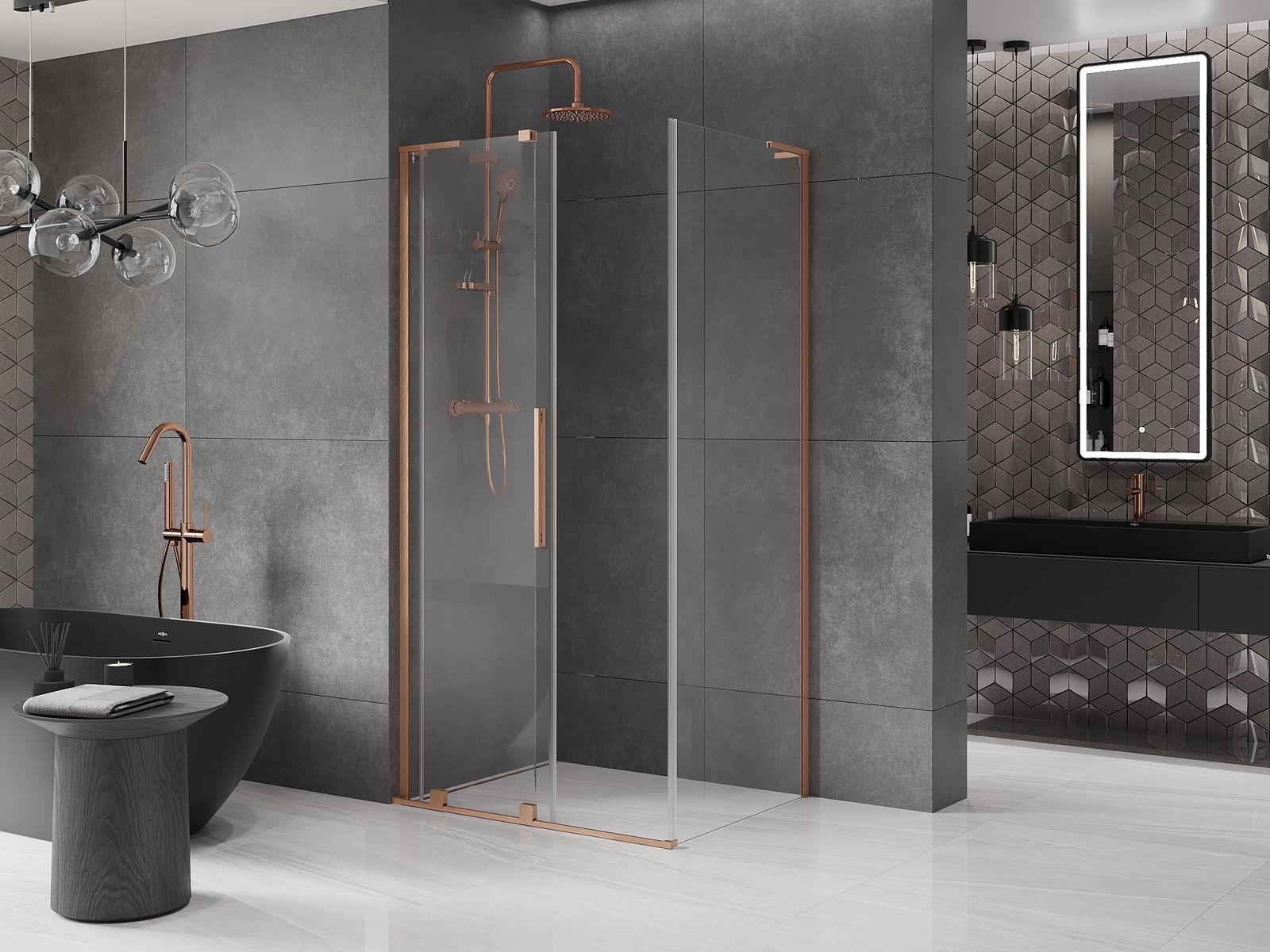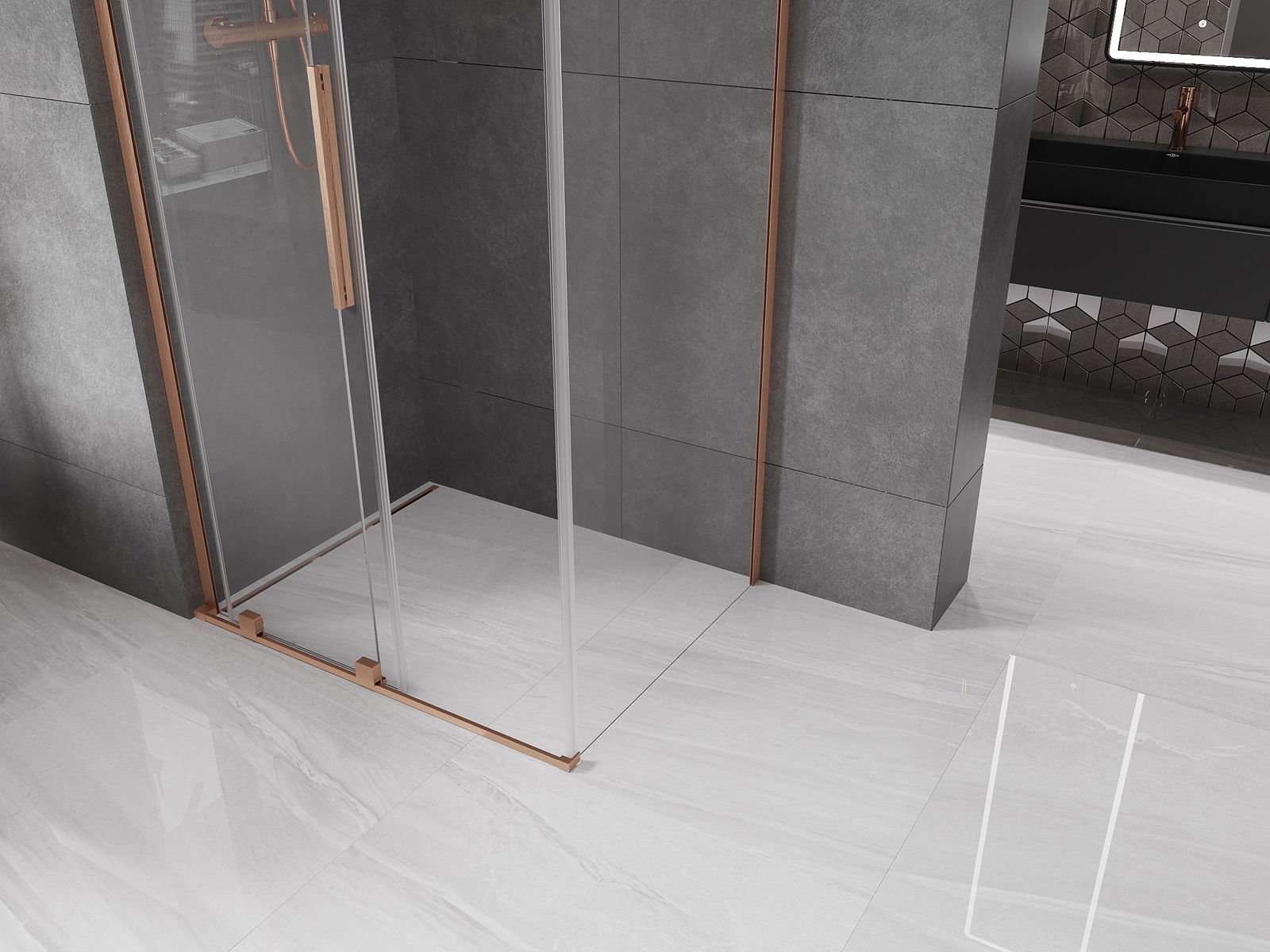 Mexen Velar L zasúvacia sprchová kabína 90 x 70 cm, transparentná, kartáčovaná meď - 871-090-070-03-65