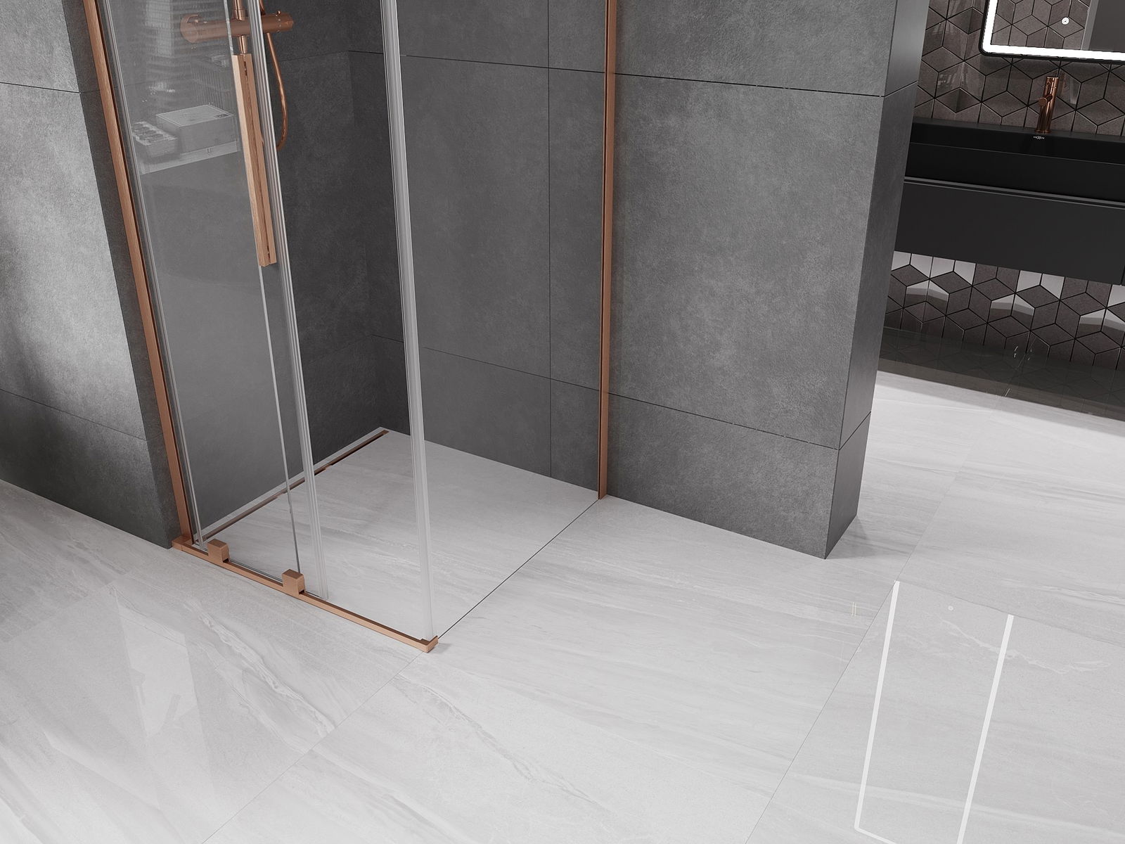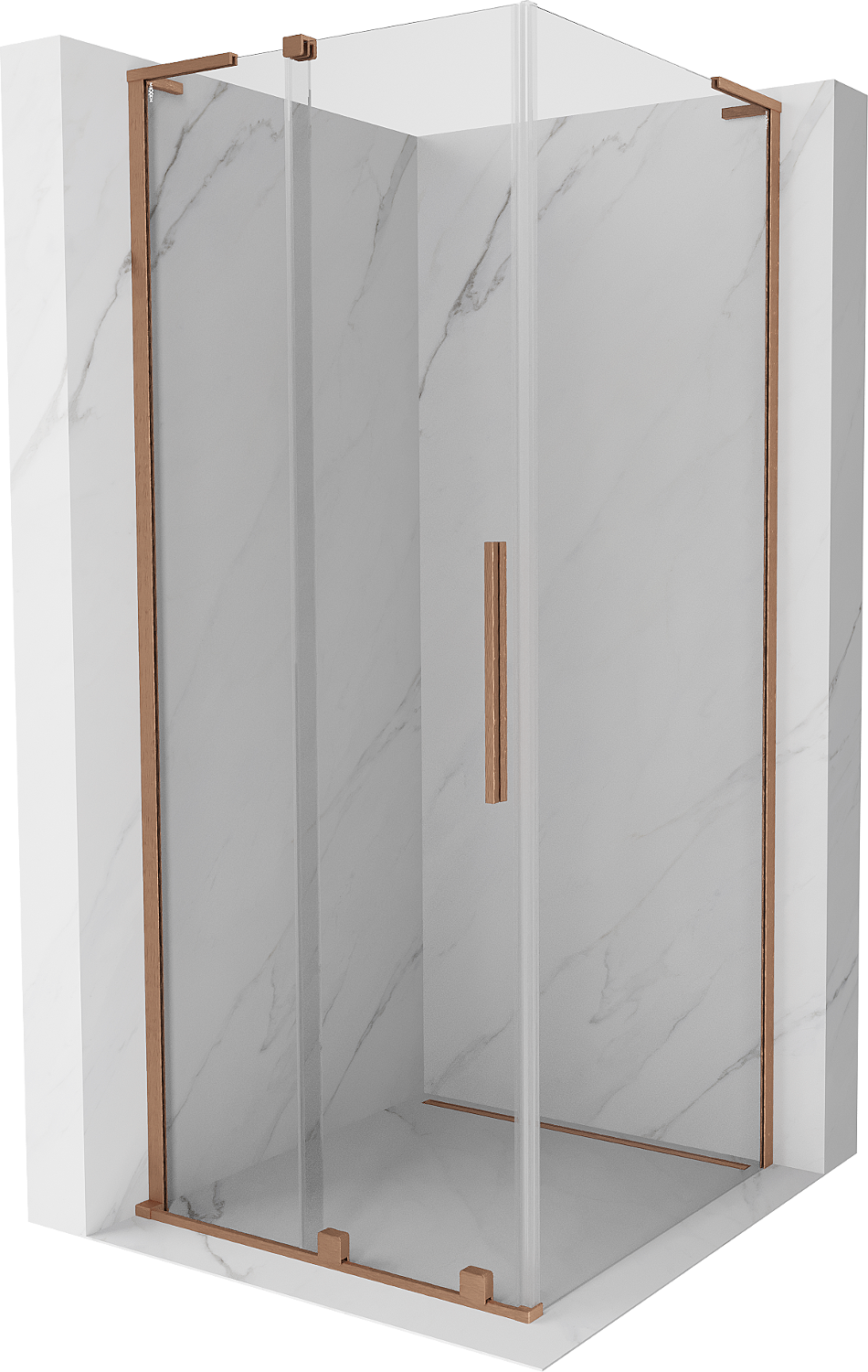 Mexen Velar L posuvná sprchová kabína 100 x 100 cm, transparentná, brúsená meď - 871-100-100-03-65