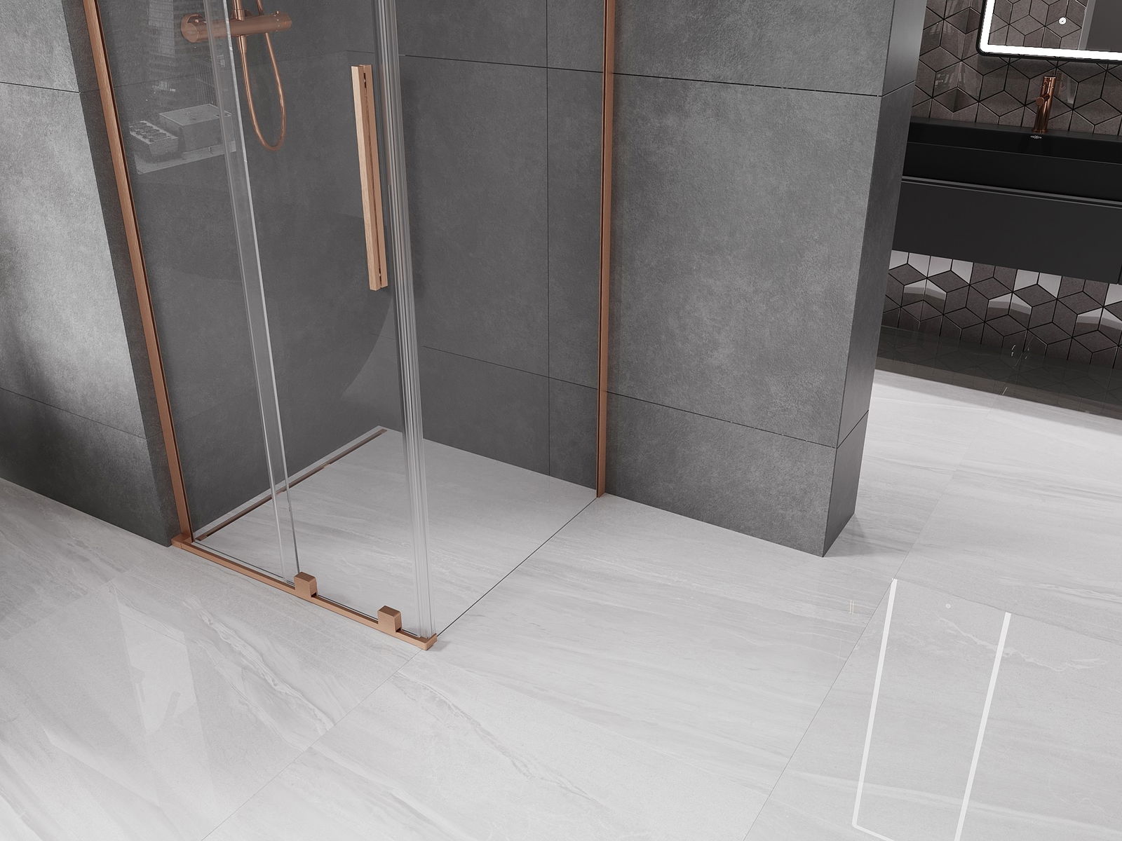 Mexen Velar L posuvná sprchová kabína 120 x 120 cm, transparentná, brúsená meď - 871-120-120-03-65