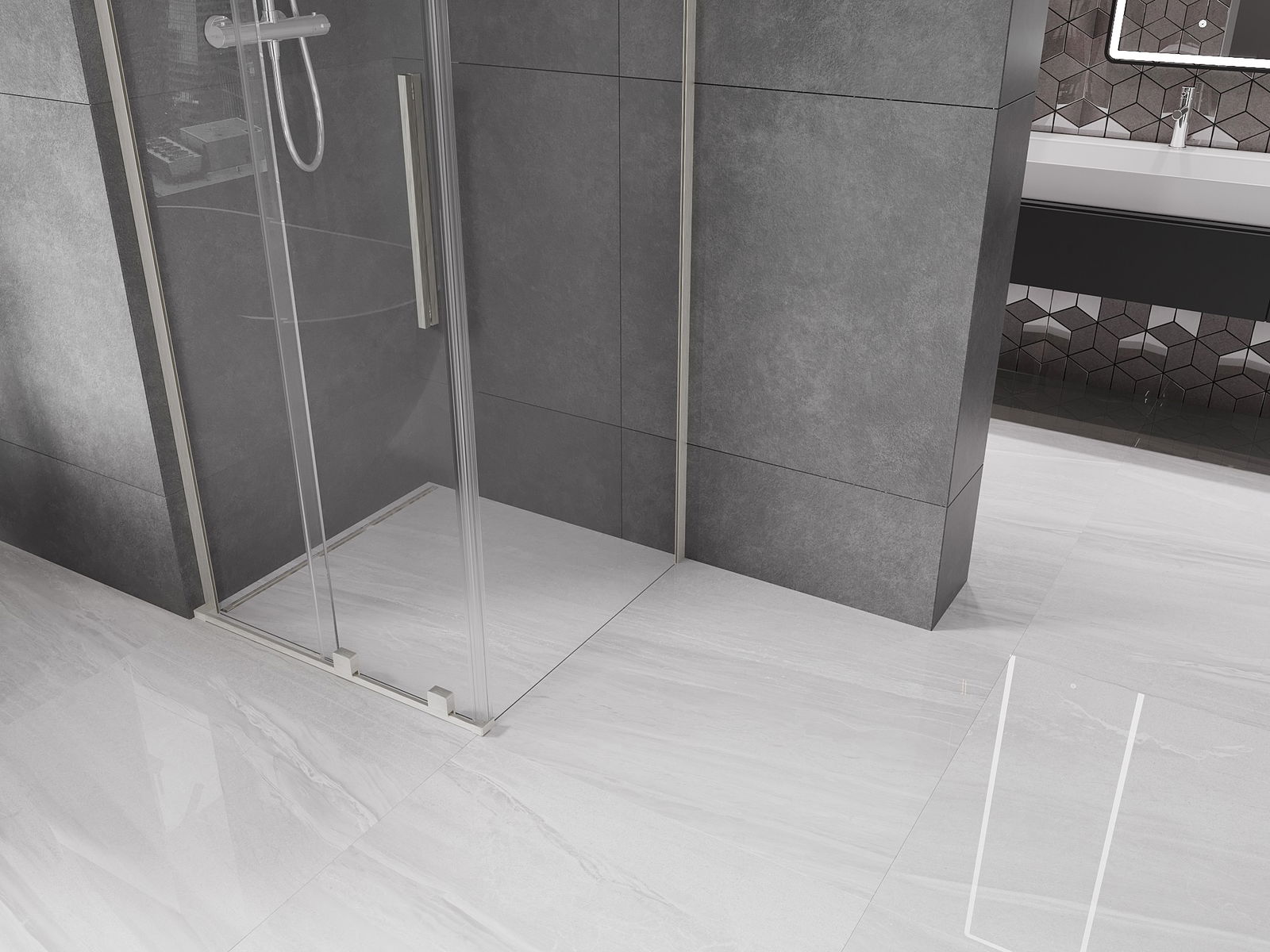 Mexen Velar L posuvná sprchová kabína 90 x 90 cm, priehľadná, brúsený nikel - 871-090-090-03-97