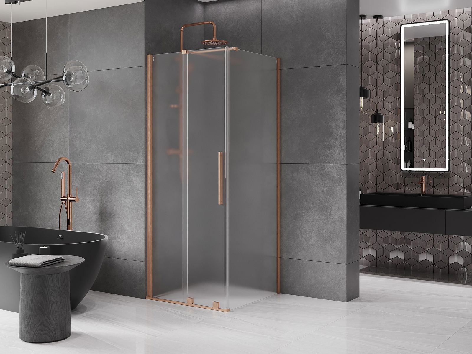 Mexen Velar posuvná sprchová kabína 110 x 110 cm, matné sklo, brúsená meď - 871-110-110-31-65