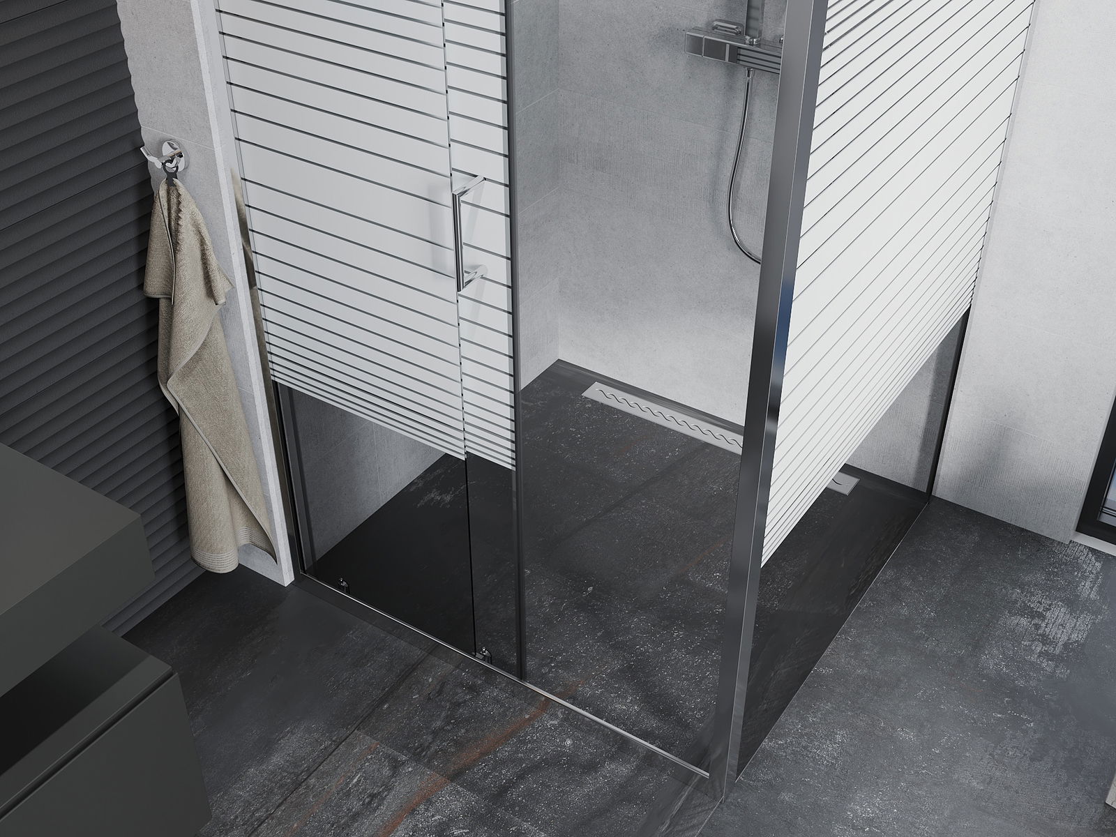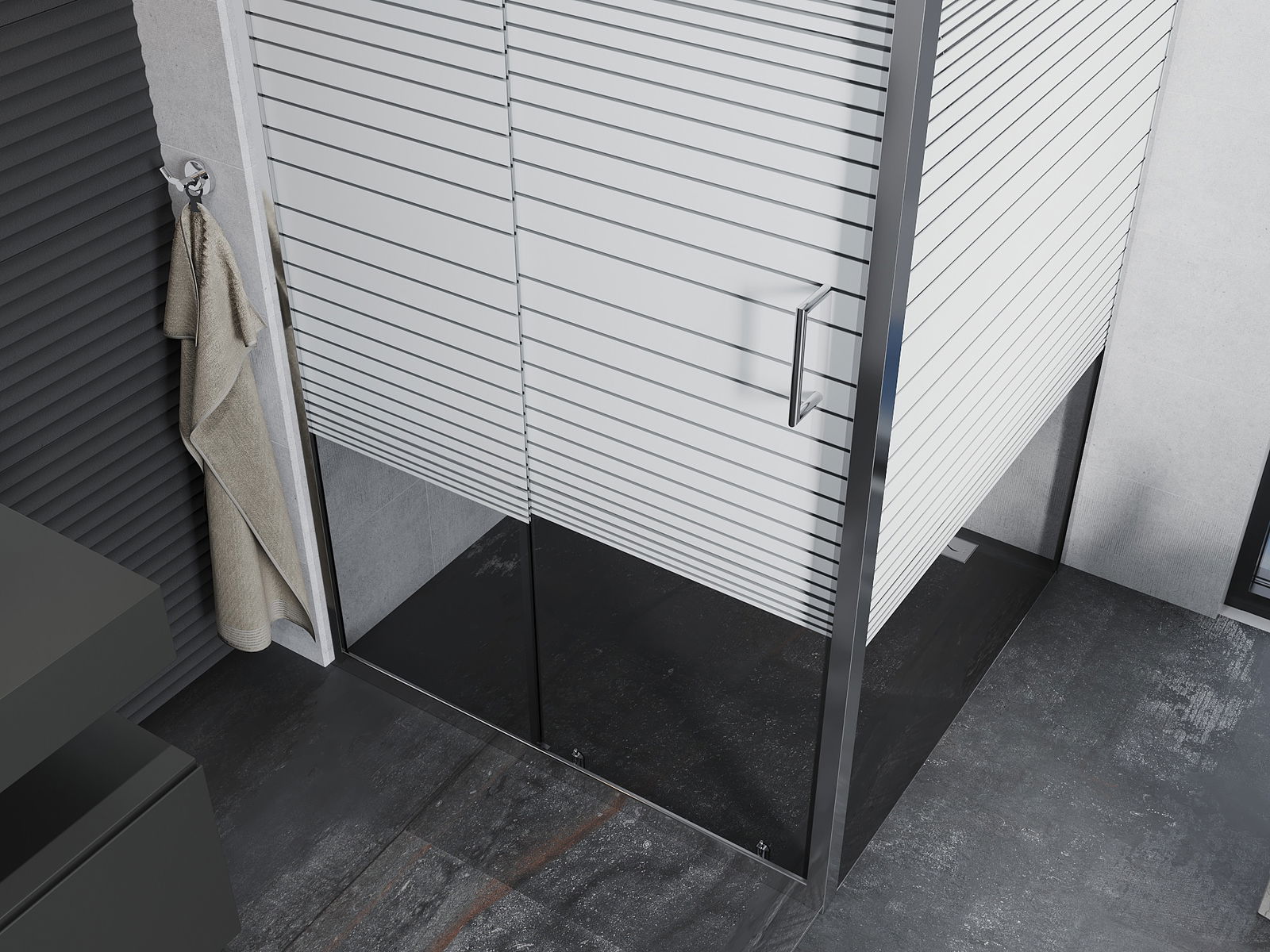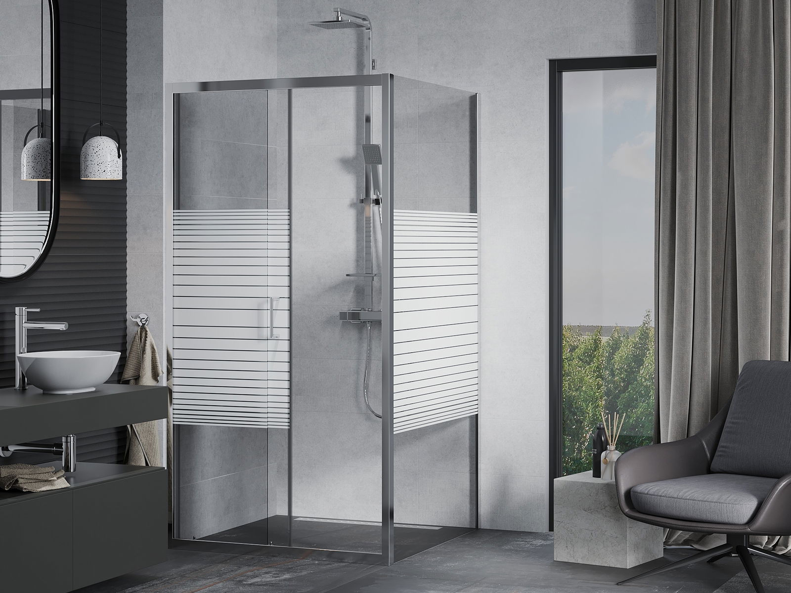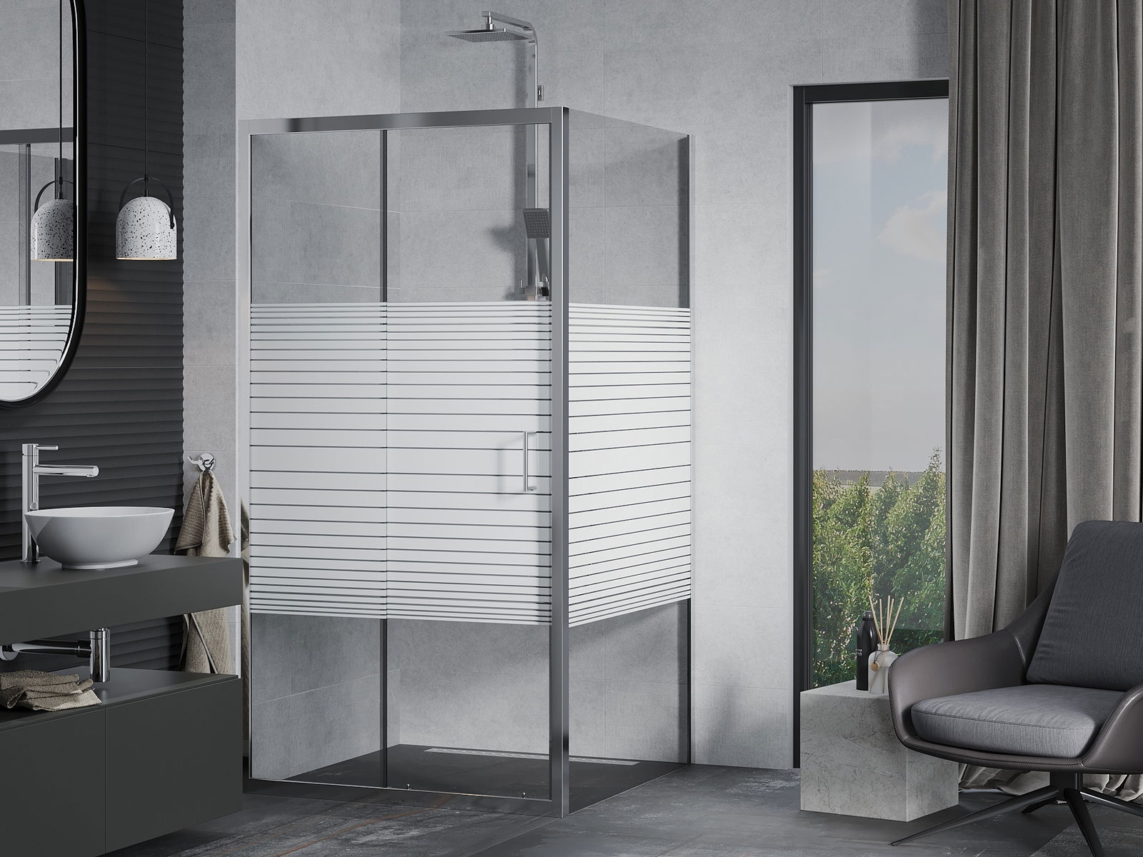 Mexen Apia posuvná sprchová kabína 90 x 90 cm, biele pruhy, chróm - 840-090-090-01-20