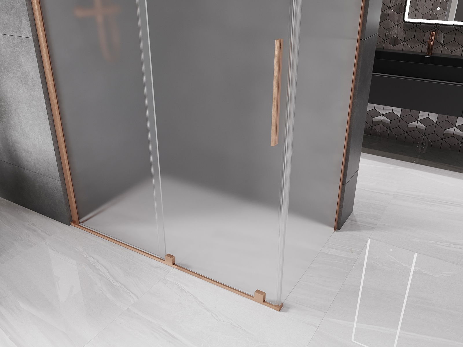 Mexen Velar posuvná sprchová kabína 150 x 85 cm, mráz, brúsená meď - 871-150-085-31-65