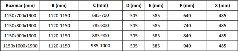 Veľkosť: 115x70 cm (dvere 115 cm, stena 70 cm)