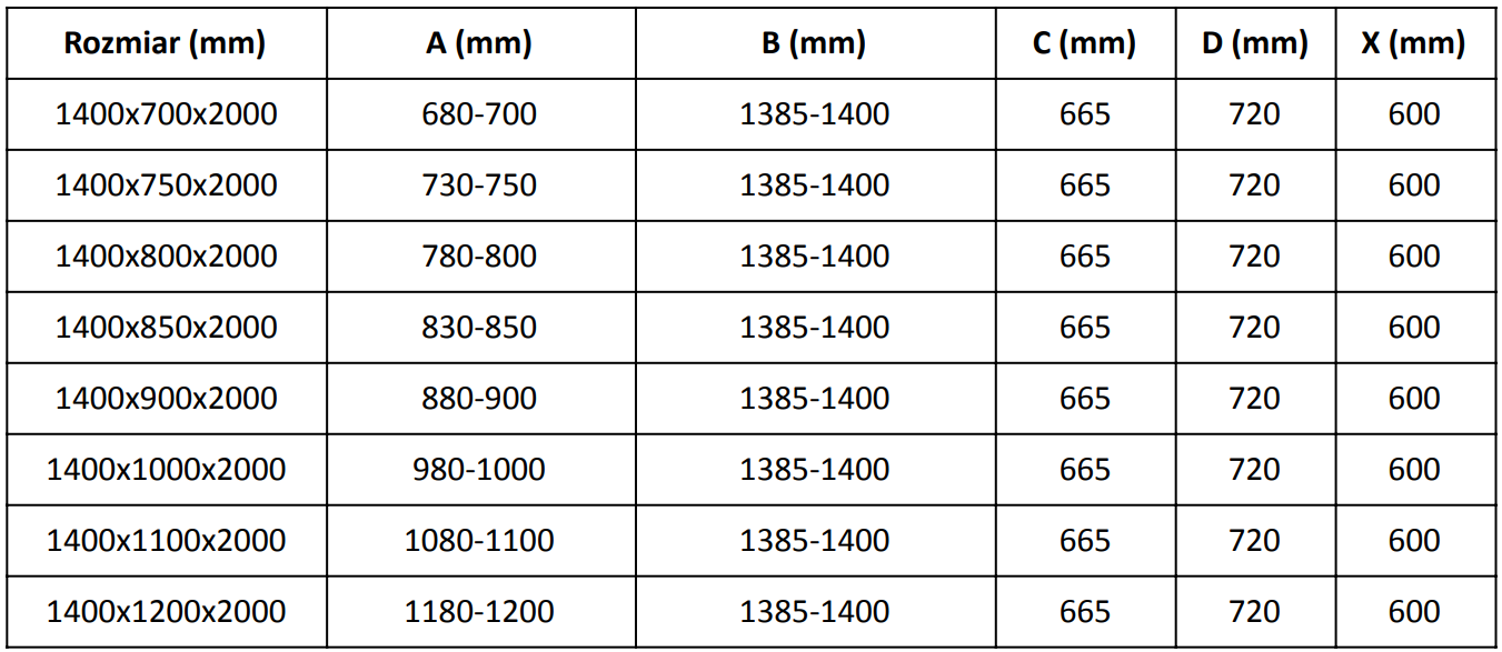 Rozmer: 140x90 cm (dvere 140 cm, stena 90 cm)