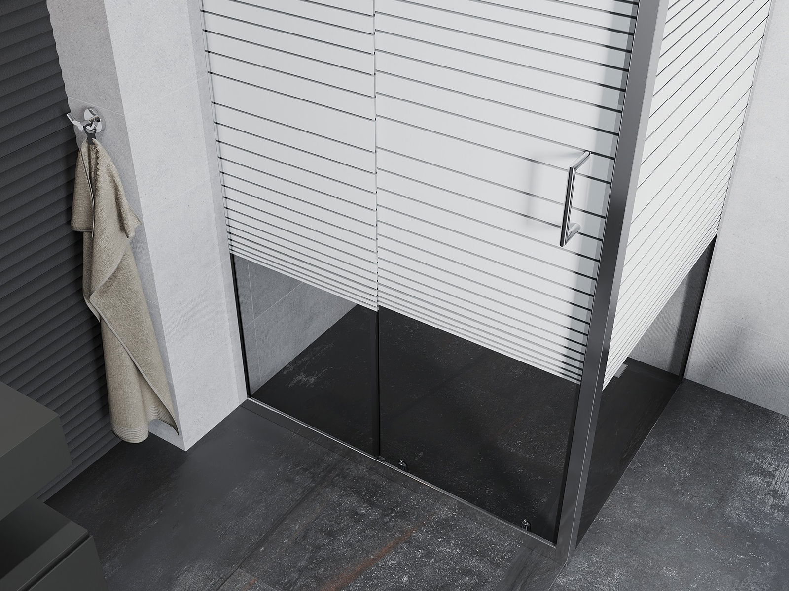 Praktická a pohodlná rukoväť bola vyrobená z odolného a odolného kovu. Módny tvar v kombinácii s povrchom prispôsobeným farbe profilov dodáva celku moderný a štýlový vzhľad, zdôrazňujúc estetiku každej kúpeľne.