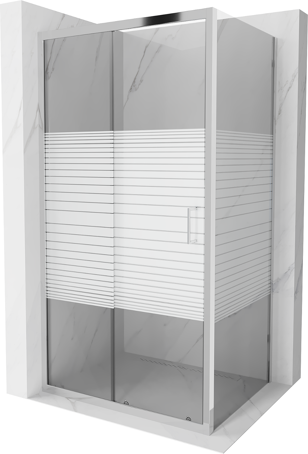 Mexen Apia posuvná sprchová kabína 120 x 90 cm, biele pruhy, chróm - 840-120-090-01-20