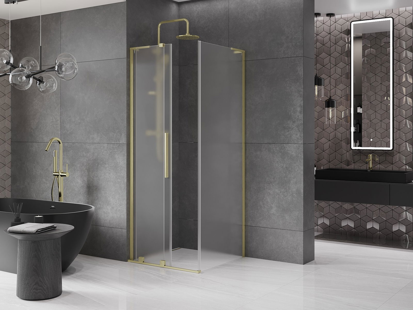Mexen Velar L posuvná sprchová kabína 110 x 110 cm, matná, zlatá kartáčovaná - 871-110-110-33-55