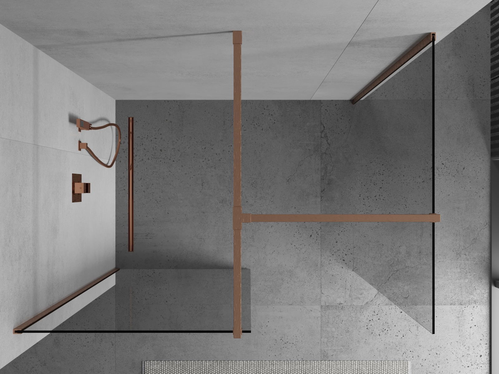Mexen Kioto sprchová stena Walk-in 180 x 85 cm, číra, brúsená meď - 800-180-202-65-00-085