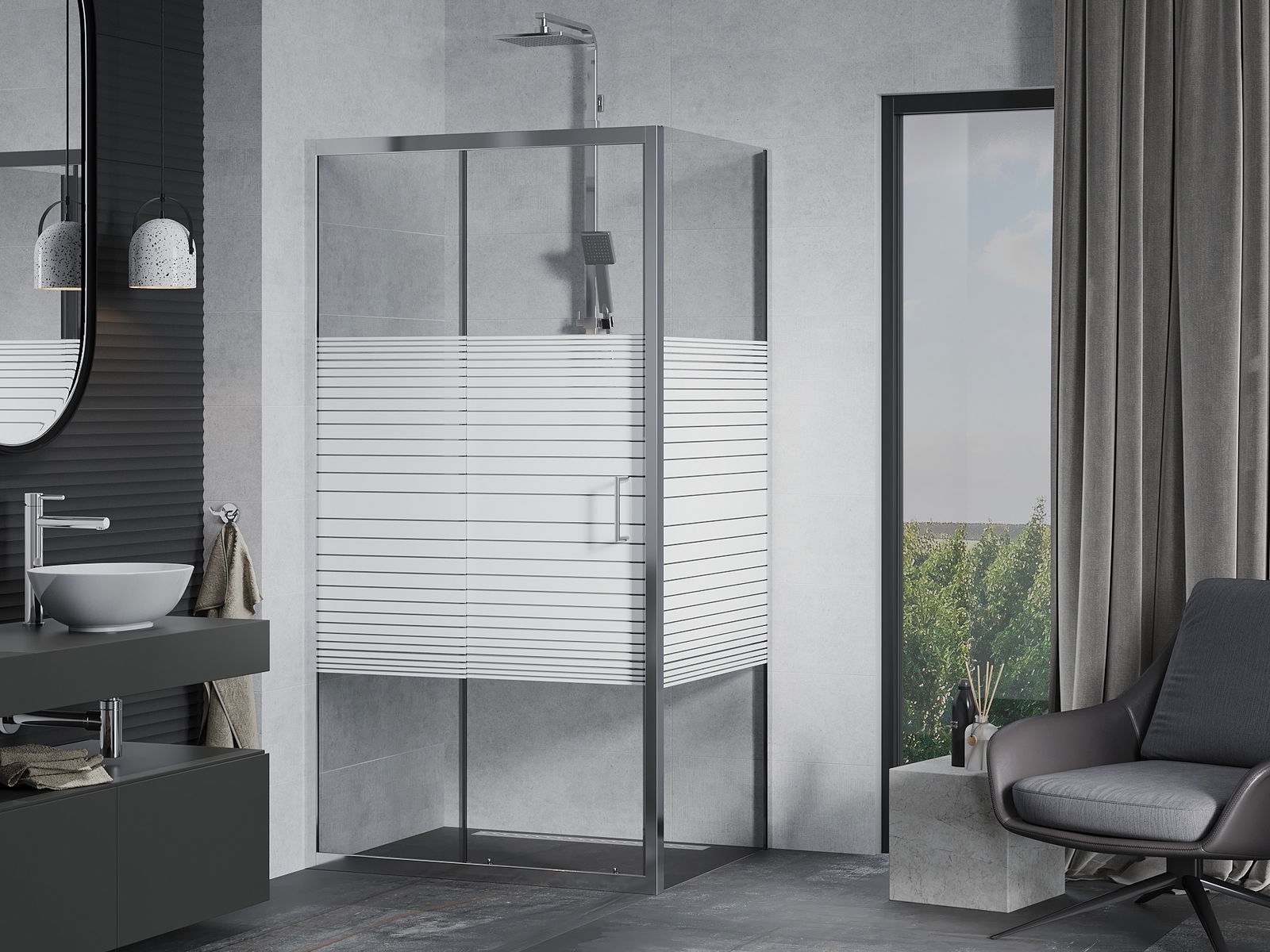 Mexen Apia posuvná sprchová kabína 140 x 100 cm, biele pásy, chróm - 840-140-100-01-20