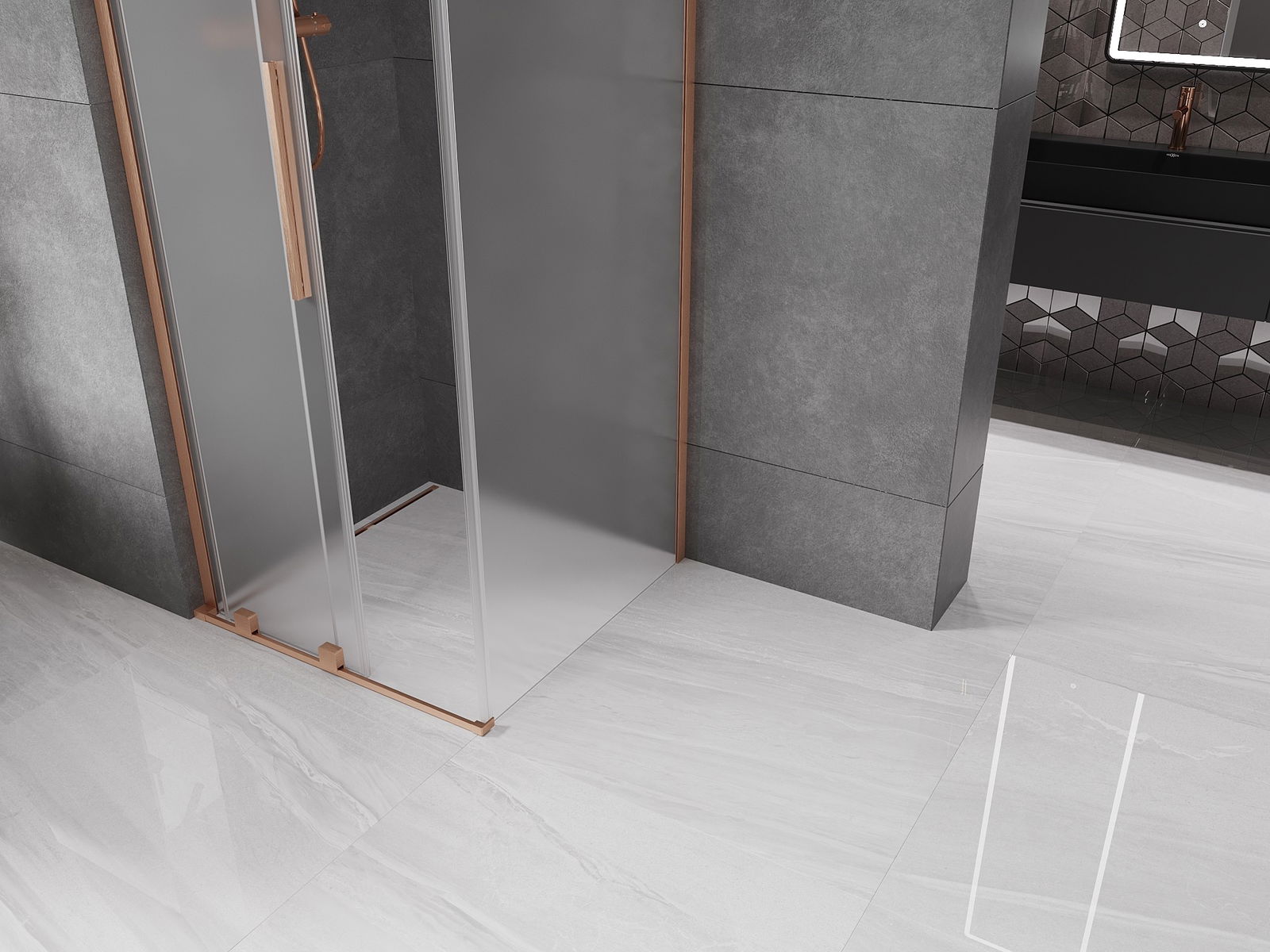 Mexen Velar L sprchový kút posuvný 120 x 120 cm, matné sklo, brúsená meď - 871-120-120-33-65
