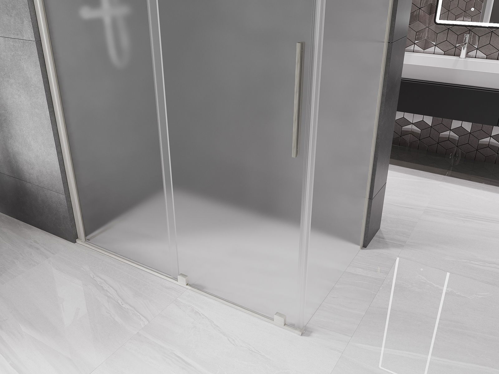 Mexen Velar posuvná sprchová kabína 160 x 90 cm, námraza, brúsený nikel - 871-160-090-31-97