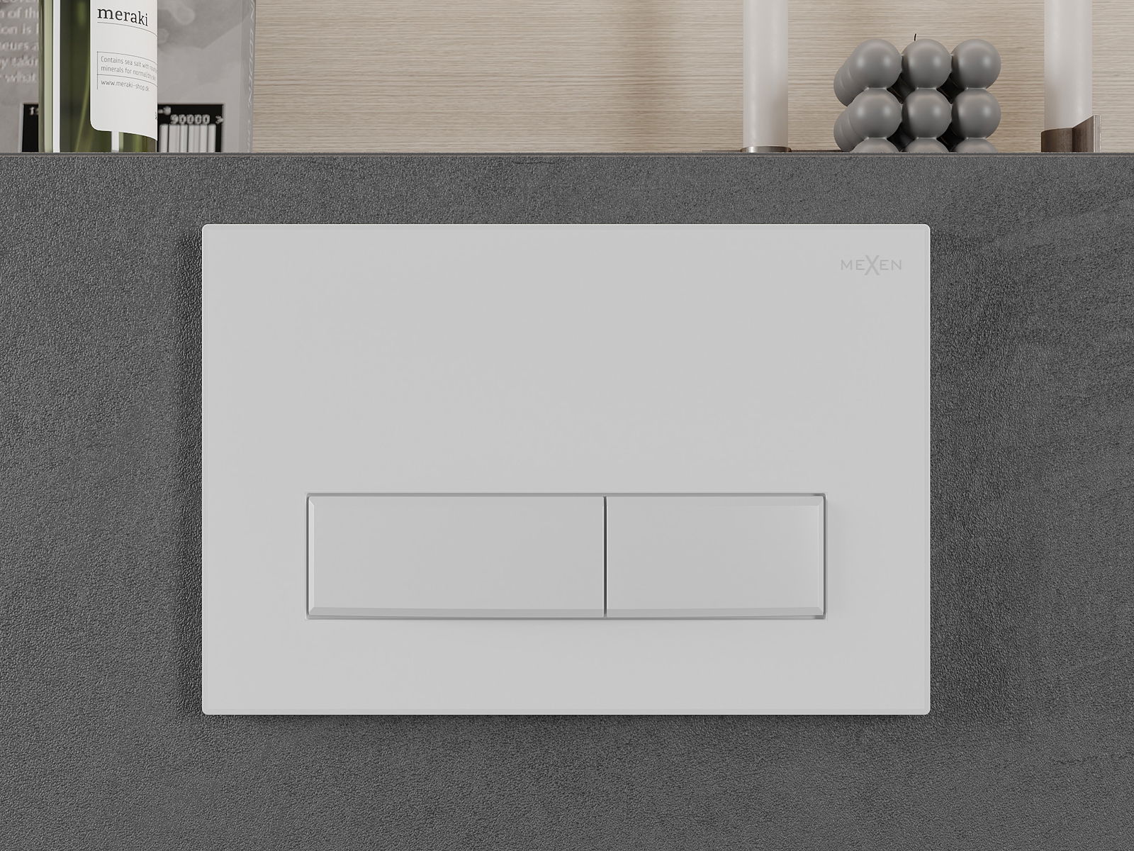 Tlačidlo sa zmestí na rám z Mexen Fenix Slim Series, v ktorej je možné nainštalovať spredu. Populárne a praktické riešenie, najmä v kúpeľniach, kde je prístup k gombíku spredu pohodlnejší.