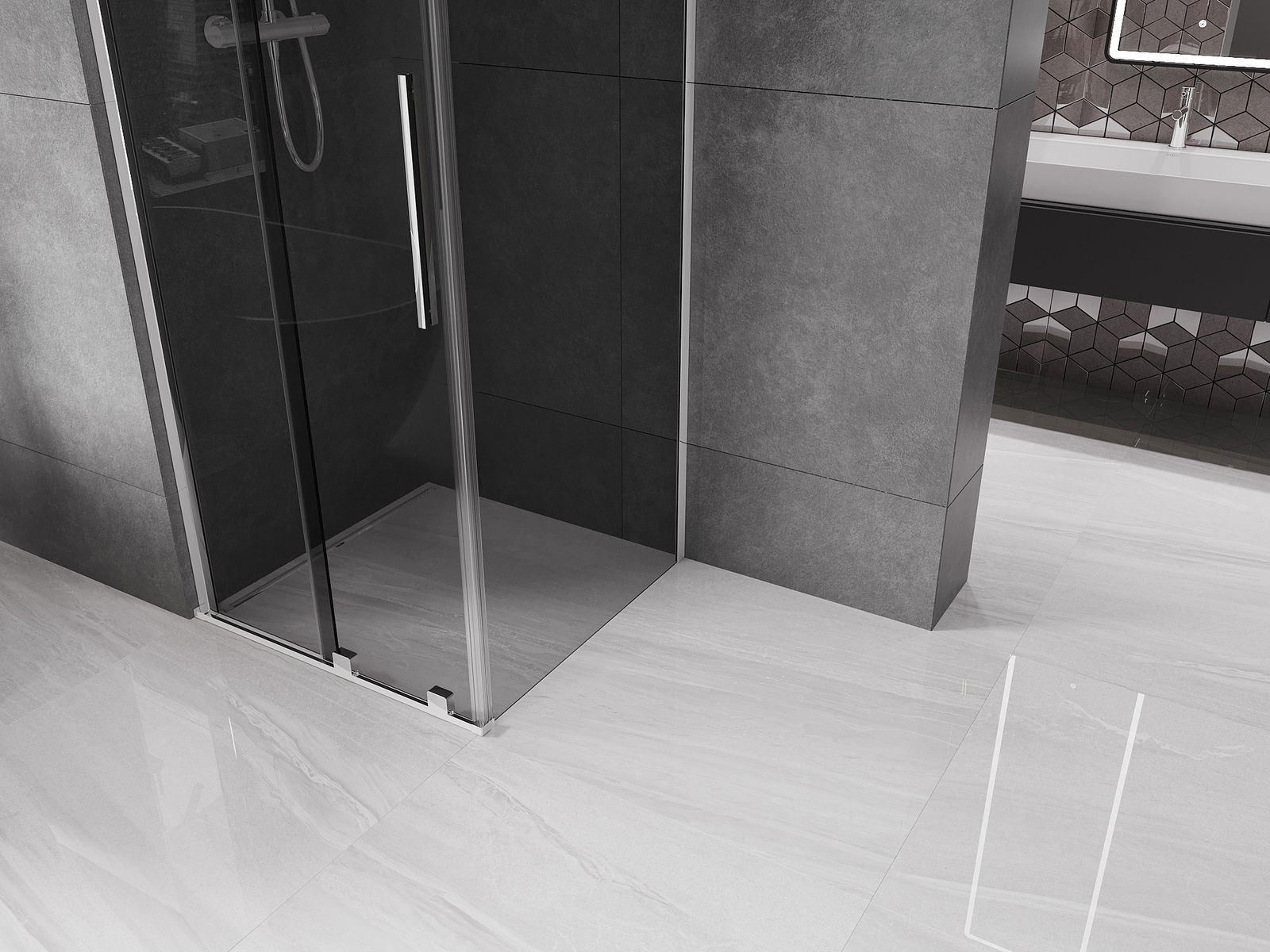 Mexen Velar sprchový kút posuvný 100 x 100 cm, grafit, chróm - 871-100-100-41-01