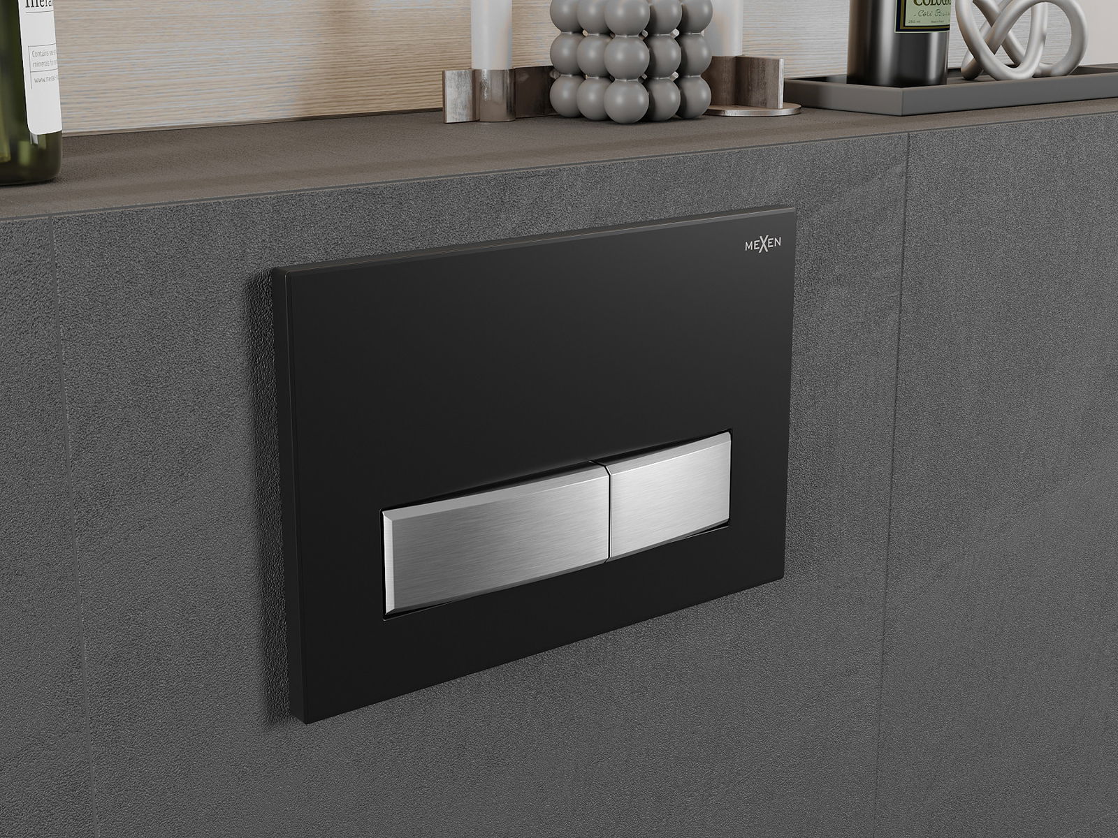 Tlačidlo sa zmestí na rám z Mexen Fenix Slim Series, v ktorej je možné nainštalovať spredu. Populárne a praktické riešenie, najmä v kúpeľniach, kde je prístup k gombíku spredu pohodlnejší.