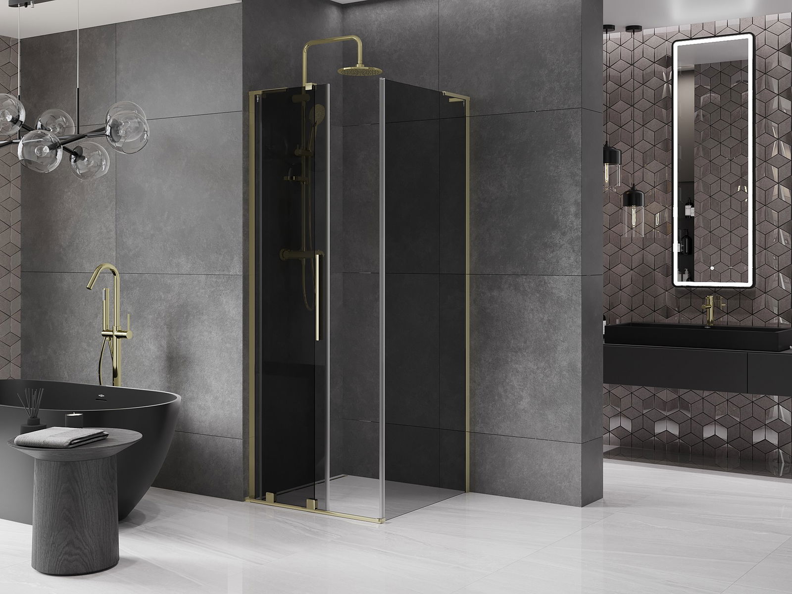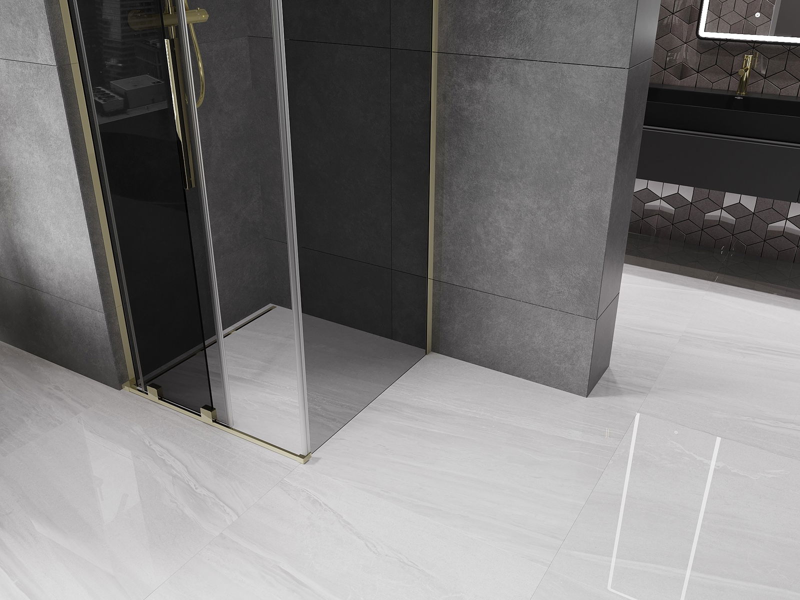 Mexen Velar L posuvná sprchová kabína 90 x 90 cm, grafit, zlato - 871-090-090-43-50
