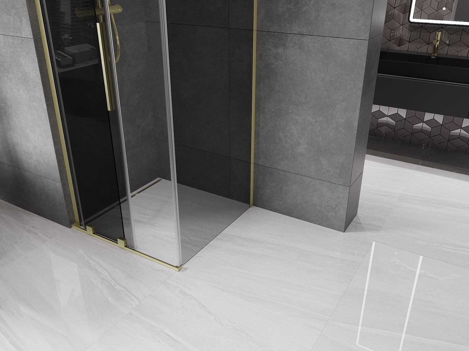 Mexen Velar L sprchový kút posuvný 120 x 120 cm, grafit, zlatý kartáčovaný - 871-120-120-43-55