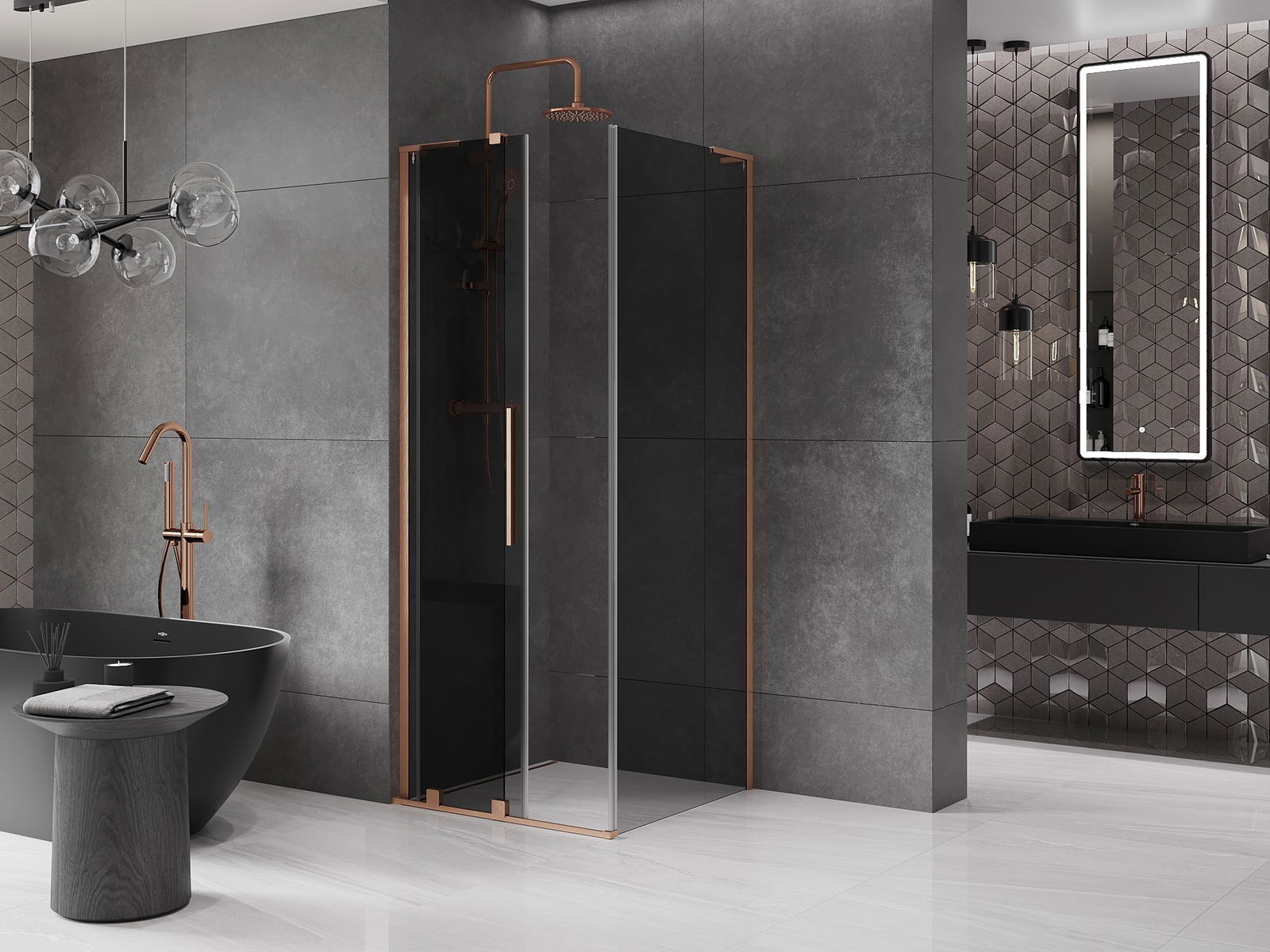 Mexen Velar L sprchový kút posuvný 110 x 110 cm, grafit, brúsená meď - 871-110-110-43-65