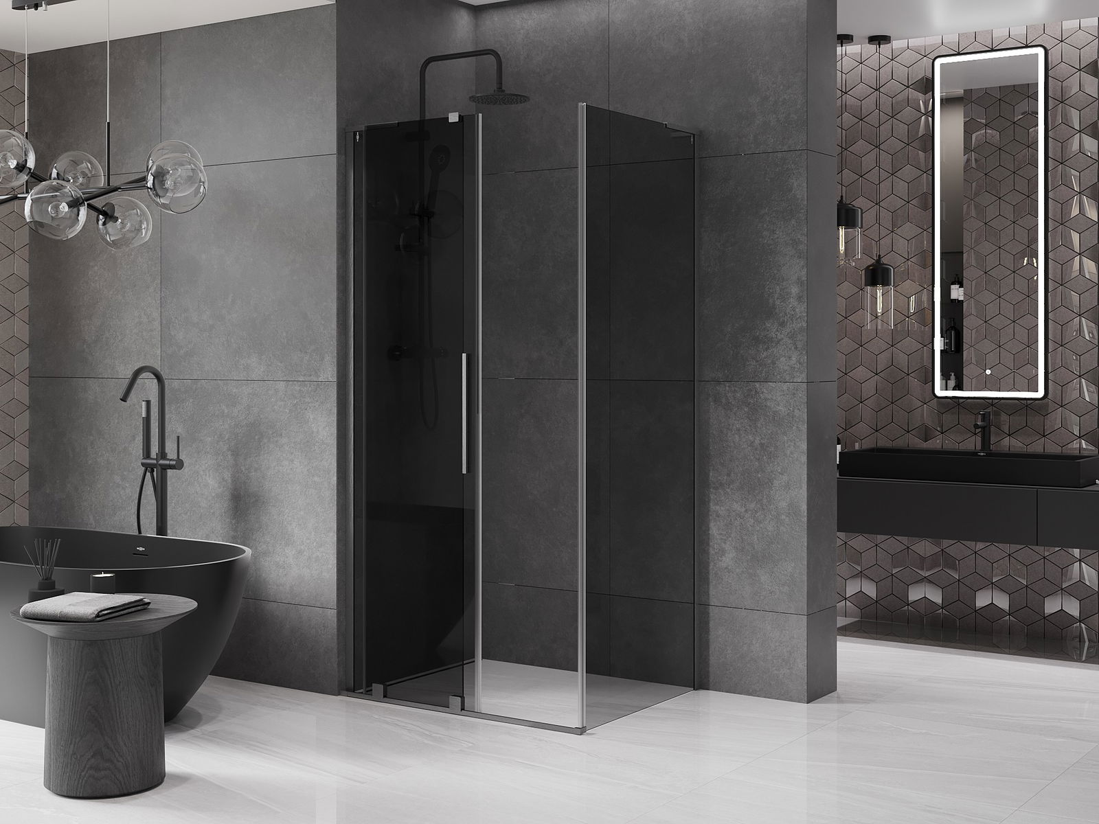 Praktický a pohodlný držiak je vyrobený z nehrdzavejúcej ocele. Módny tvar v kombinácii s povrchovou úpravou prispôsobenou farbe profilov dodáva celej konštrukcii moderný a štýlový vzhľad, podčiarkujúc estetiku každej kúpeľne.