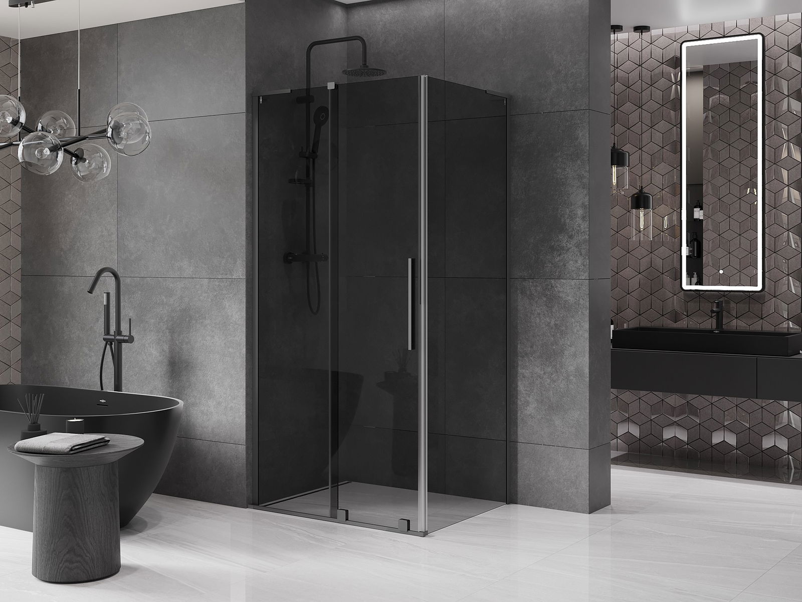 Mexen Velar L posuvný sprchový kút 110 x 120 cm, grafit, gun metal - 871-110-120-43-95
