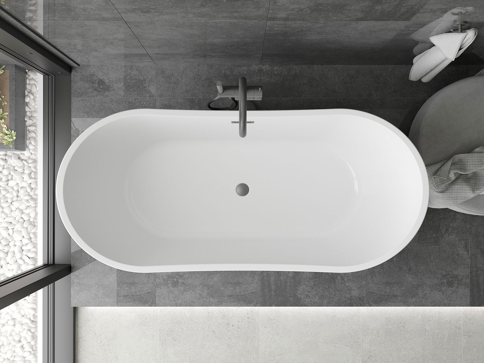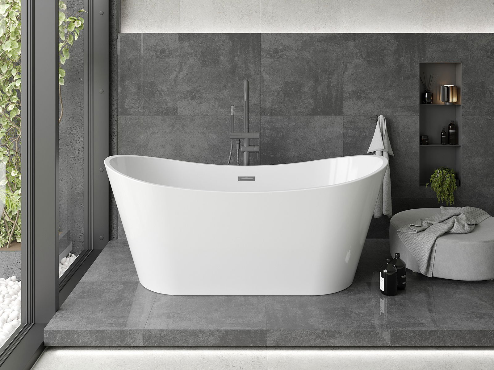 Mexen Montana voľne stojaca vaňa 150 x 75 cm, biela, preliv gun metal - 52011507500-95