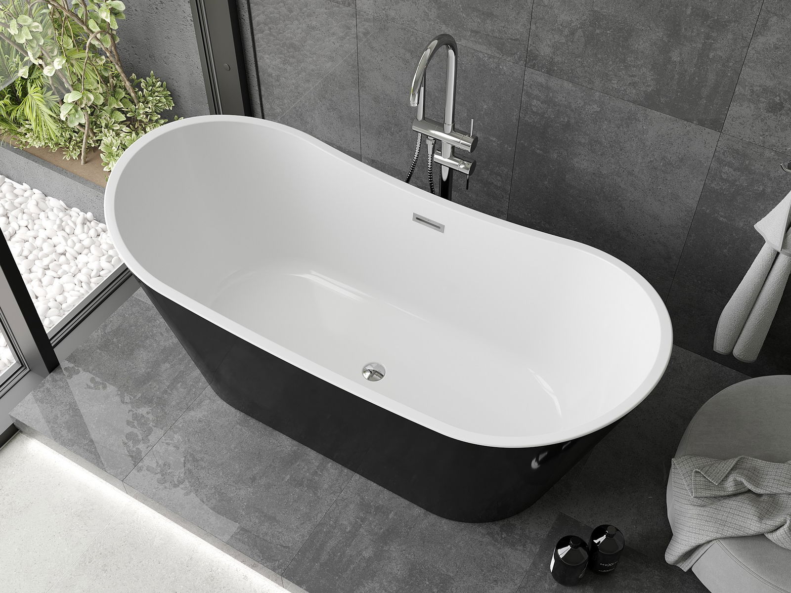 Mexen Montana voľne stojaca vaňa 150 x 75 cm, biela/čierna, preliv chróm - 52011507575-01
