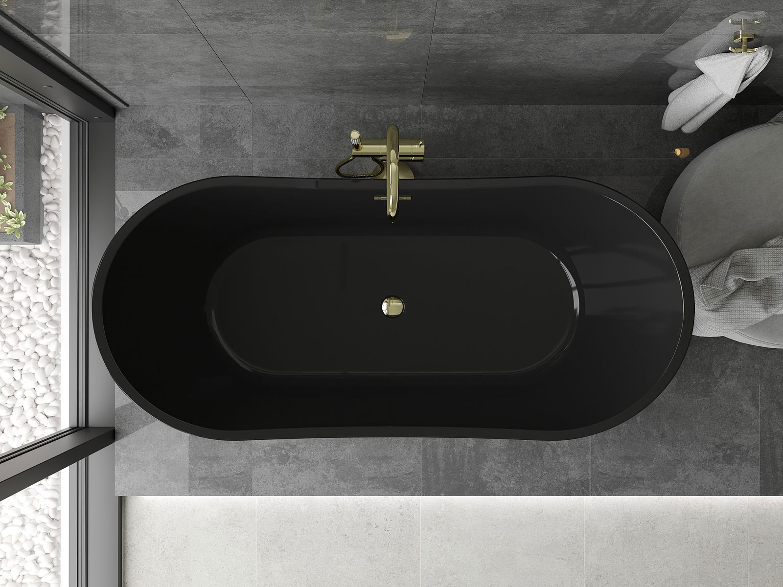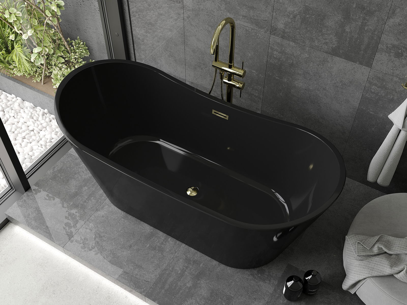 Mexen Montana je elegantná voľne stojaca vaňa s rozmermi 170 x 80 cm, dokončená v efektnej čiernej farbe so zlatými detailmi. Vyrobená zo sanitárneho akrylu, vyznačuje sa odolnosťou proti matovaniu a UV žiareniu, čo zaručuje dlhodobý lesk. Oválny tvar a prepadový otvor pridávajú jej funkčnosť, a voľne stojaca montáž uľahčuje inštaláciu. V sete sa nachádza sifón a zátka click-clack, čo ju robí pripravenou na použitie hneď po inštalácii.