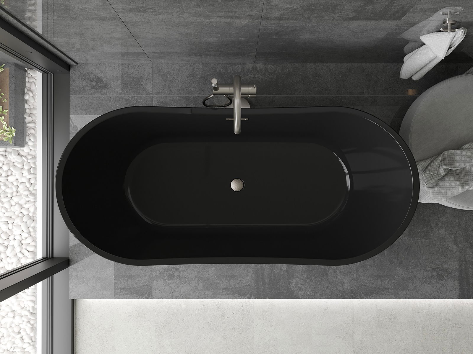 Mexen Montana samostatne stojaca vaňa 170 x 80 cm, čierna, prepad brúsený nikel - 52011708070-97