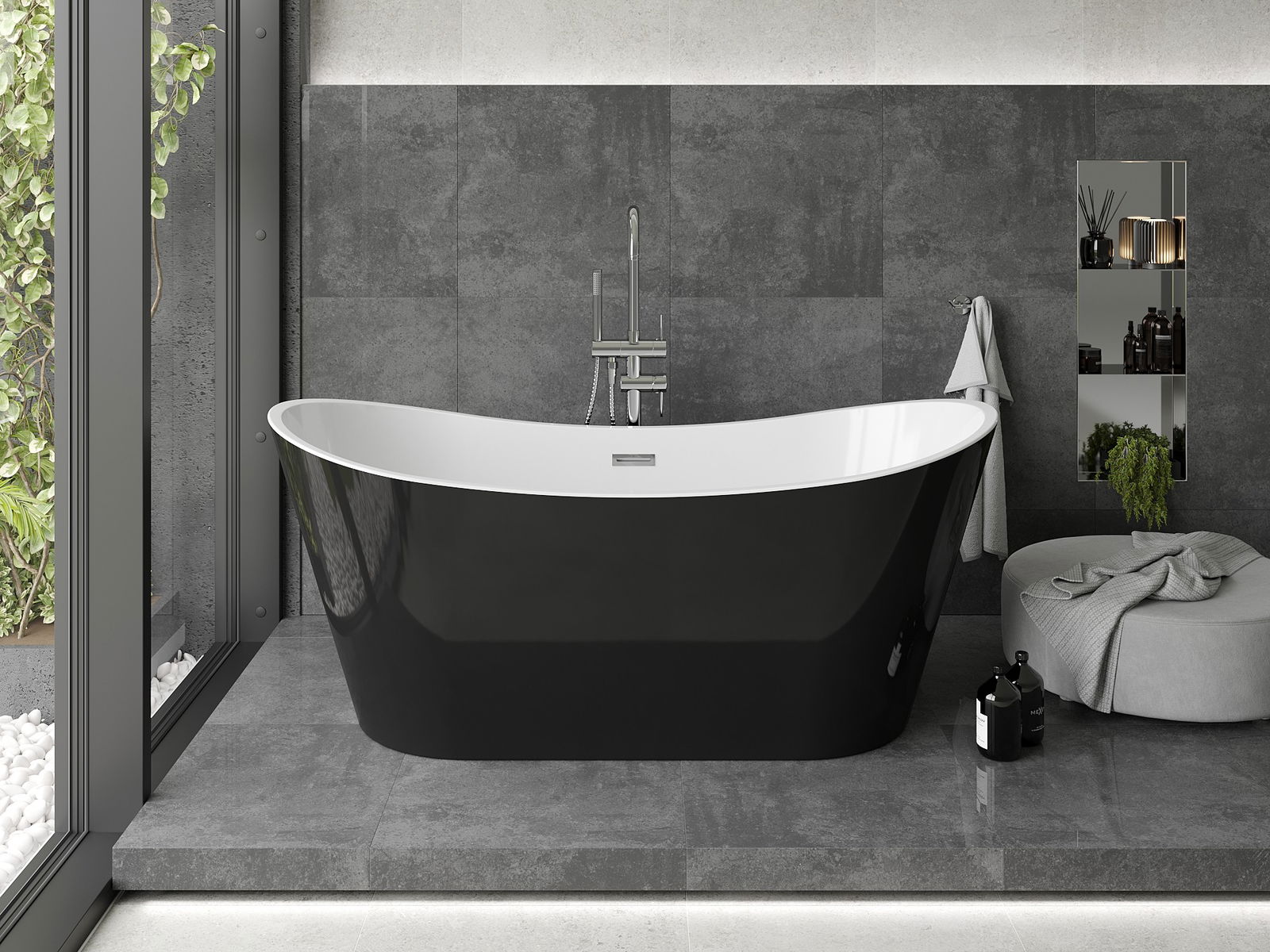 Voľne stojaca vaňa s rozmermi 180 x 80 cm je vynikajúcou voľbou pre tých, ktorí si cenia eleganciu a pohodlie. Vyrobená zo sanitárneho akrylu, jej bielo-čierna farebná kombinácia spolu s chrómovou úpravou vytvára moderný dizajn. Oválny tvar a lesk povrchu jej dodávajú výnimočný vzhľad. Vaňa je vybavená prepadovým otvorom a sifónom, čo zaručuje pohodlie pri používaní. Vďaka odolnosti proti matovaniu a UV žiareniu si zachováva estetiku po dlhý čas.