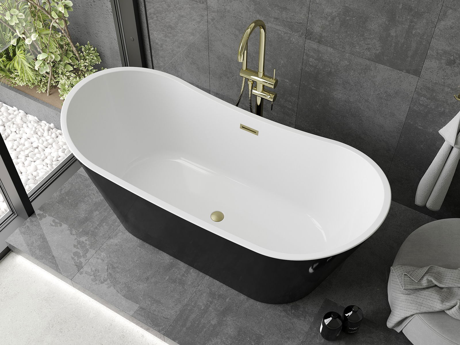 Mexen Montana voľne stojaca vaňa 180 x 80 cm, biela/čierna, prepad zlatý kartáčovaný - 52011808075-55