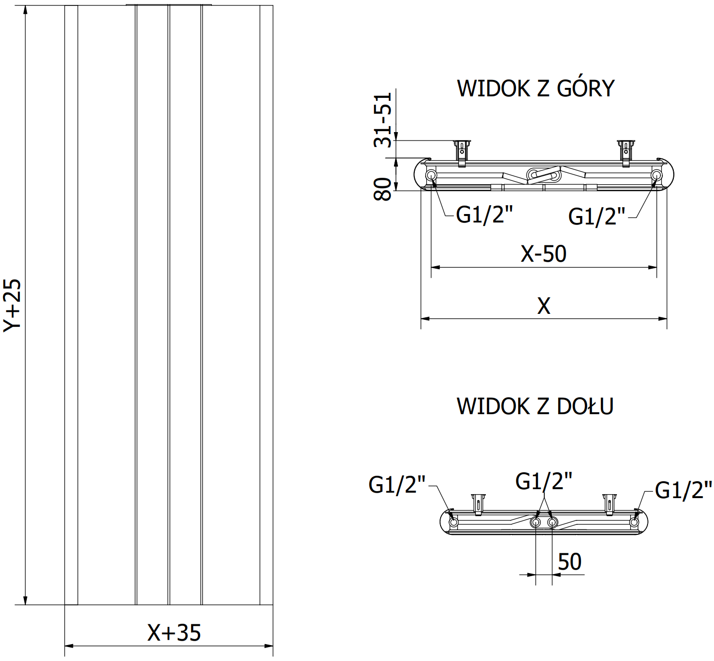Rozstup zvislých vodných kanálov: 33,3 mm