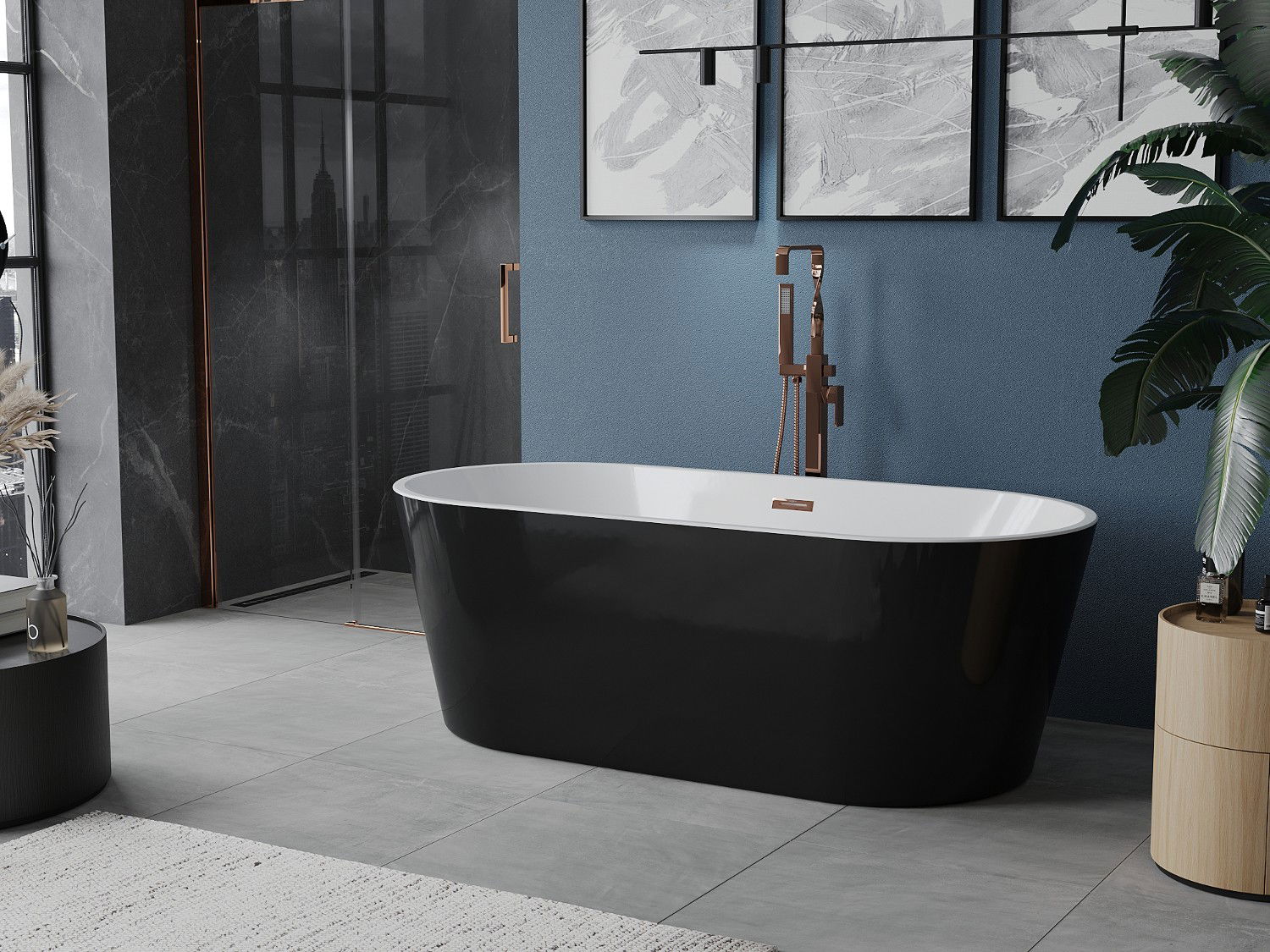 Mexen Luna voľne stojaca vaňa 160 x 75 cm, biela/čierna, prepad ružové zlato - 52031607575-60
