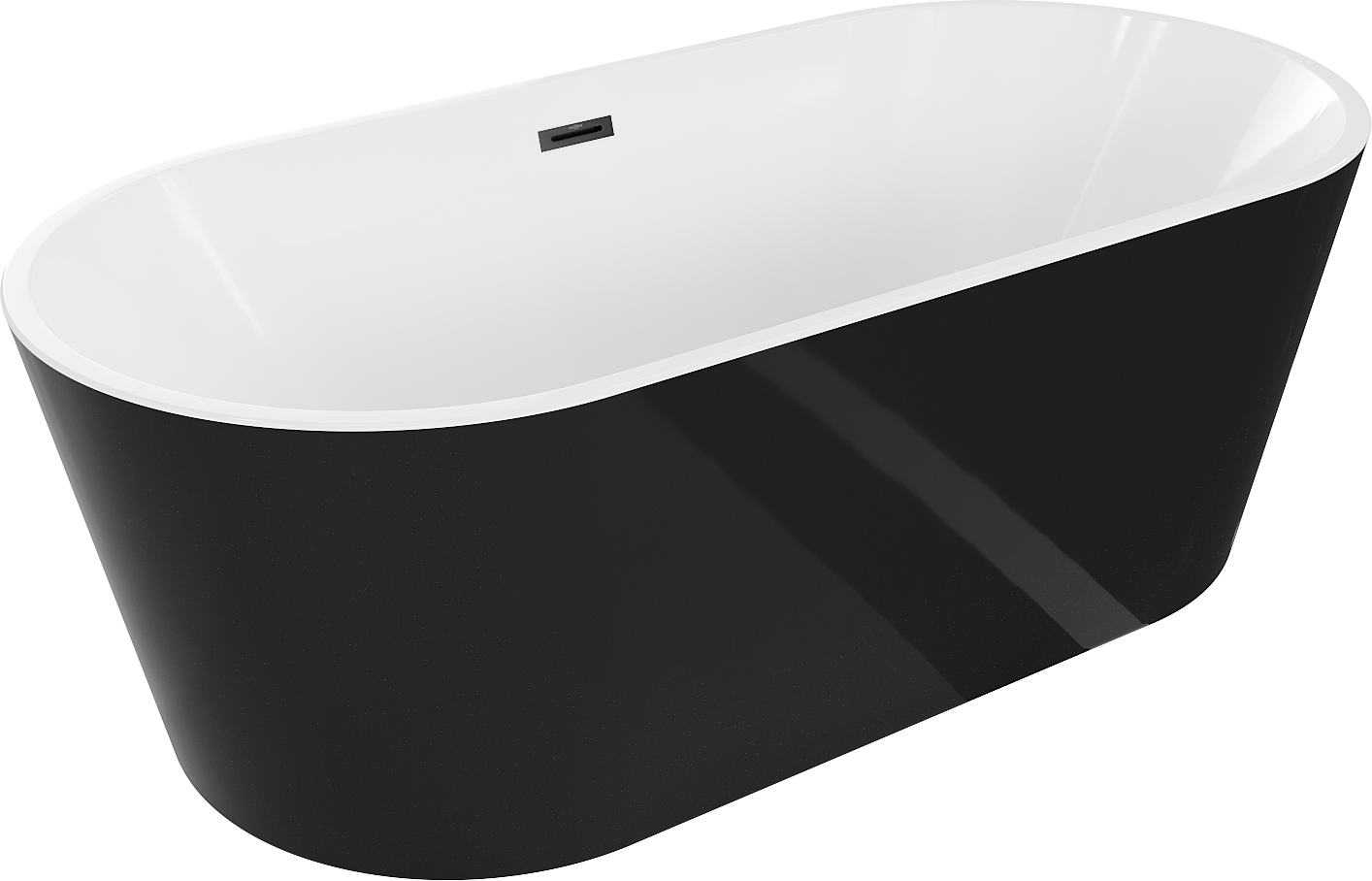 Mexen Luna voľne stojaca vaňa 160 x 75 cm, biela/čierna, preliv čierny - 52031607575-70
