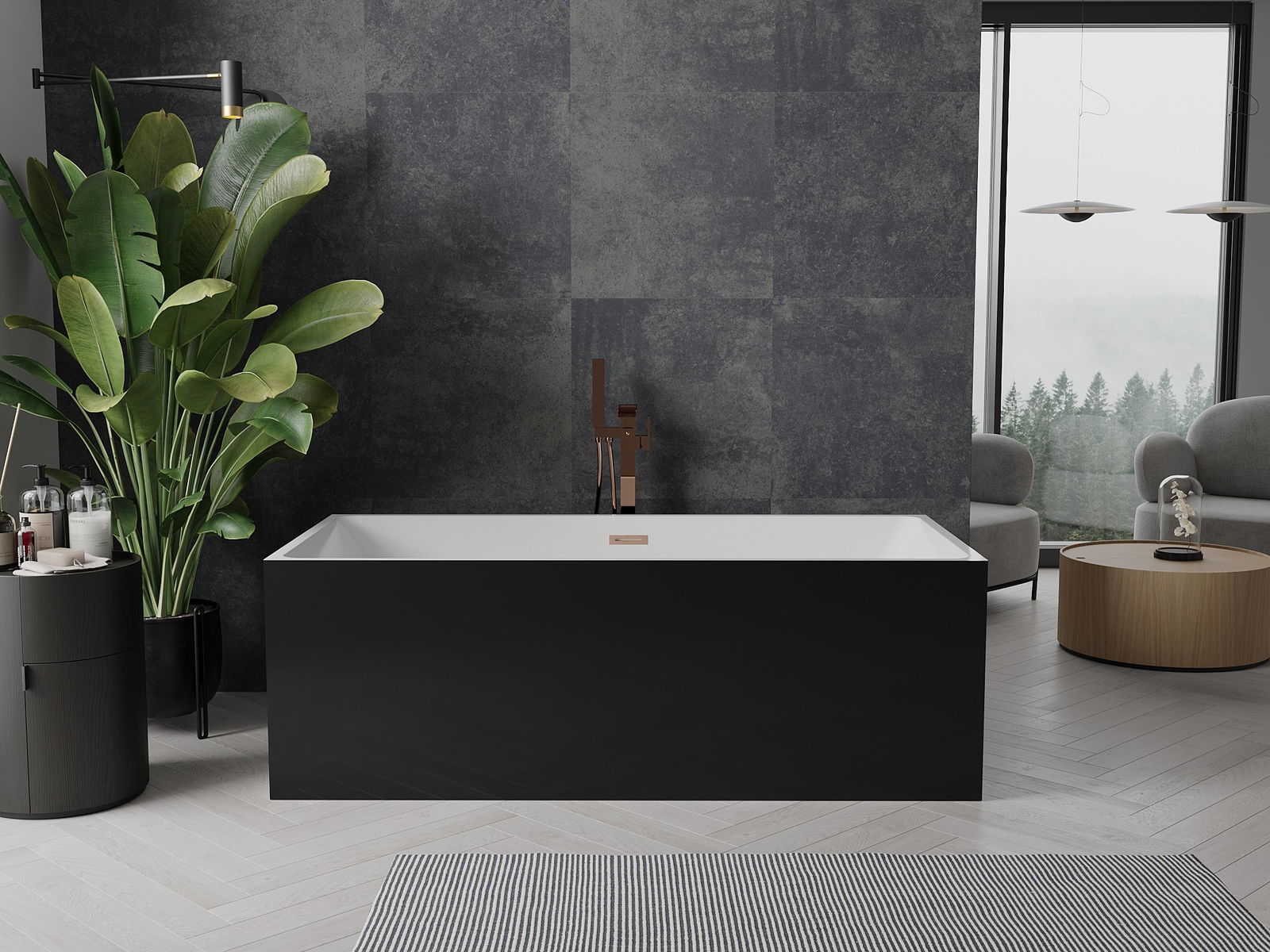 Mexen Nita voľne stojaca vaňa 170 x 80 cm, biela/čierna, preliv medený kartáčovaný - 52091708075-65