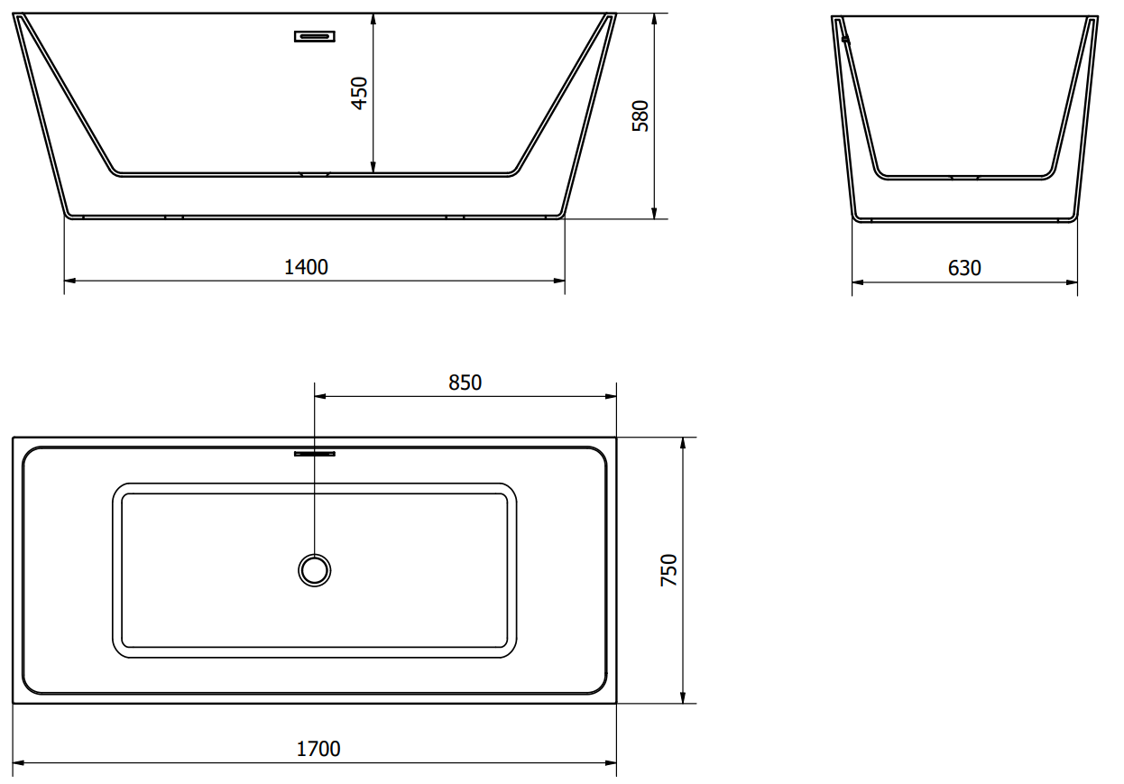 Mexen Lita voľne stojaca vaňa 170 x 75 cm, biela/čierna, čierne preliv - 52121707575-70