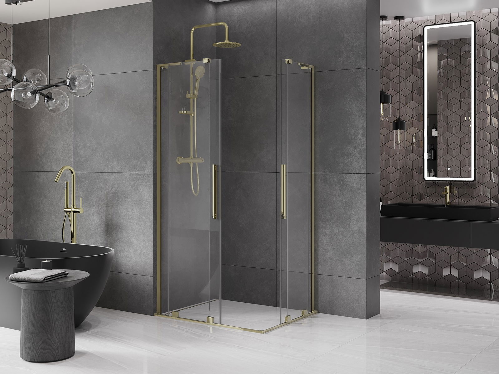 Mexen Velar L Duo sprchová kabína posuvná 100 x 90 cm, transparentná, zlatá - 871-100-090-02-03-50